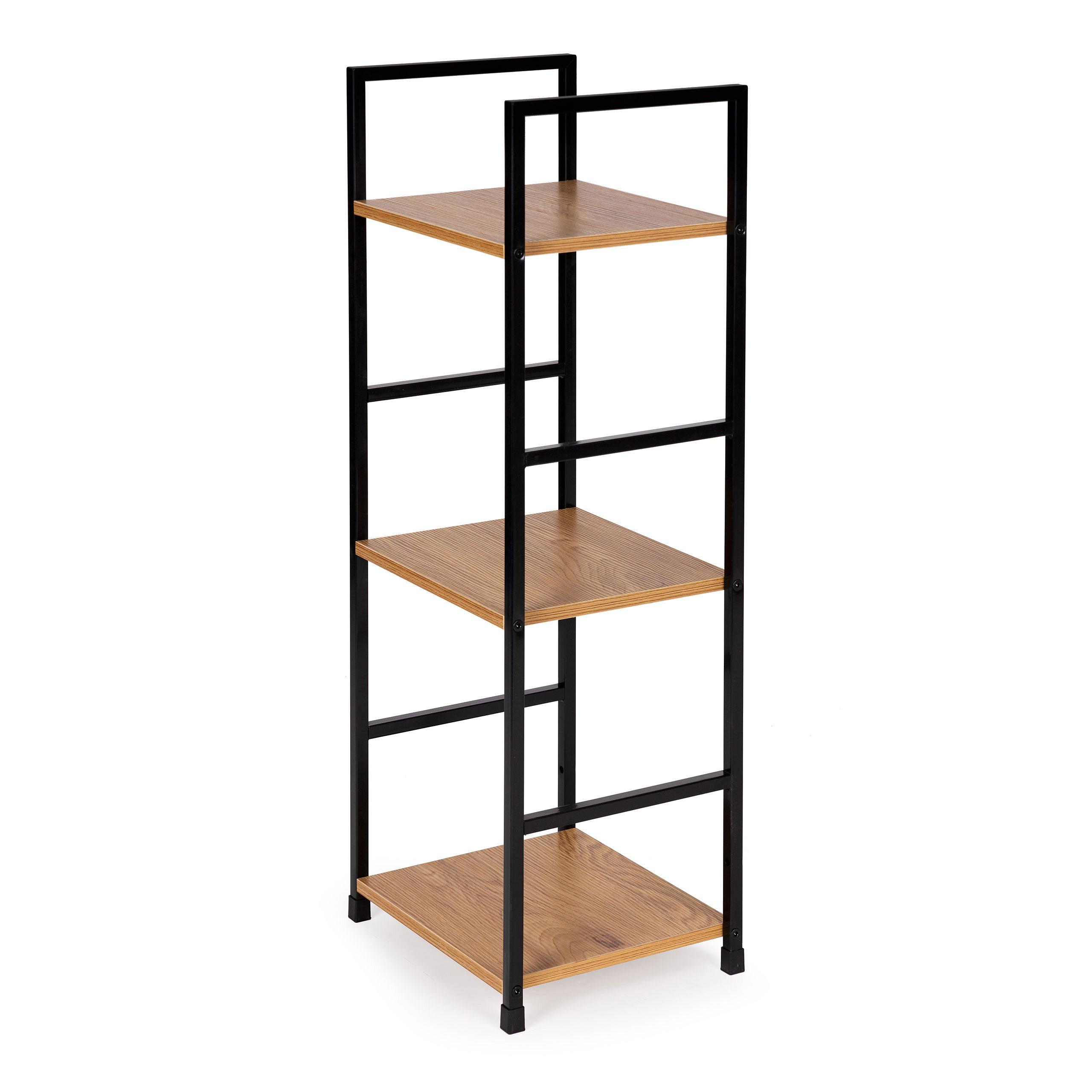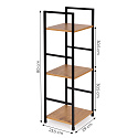 The shelves are made of MDF board finished with a wood-effect veneer. Their dimensions of 23.5 x 29 cm provide enough space to accommodate everything you like to have at hand. The distance between the shelves is 31 cm. The shelf frame is made of powder-coated metal, and its legs feature protective caps to prevent floor scratches. The frame is constructed from square profiles with a side length of 12 mm.