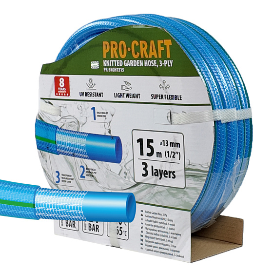 Modrá zahradní hadice Procraft PR-3KGH1315 3 vrstvy, 1/2" 15m