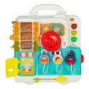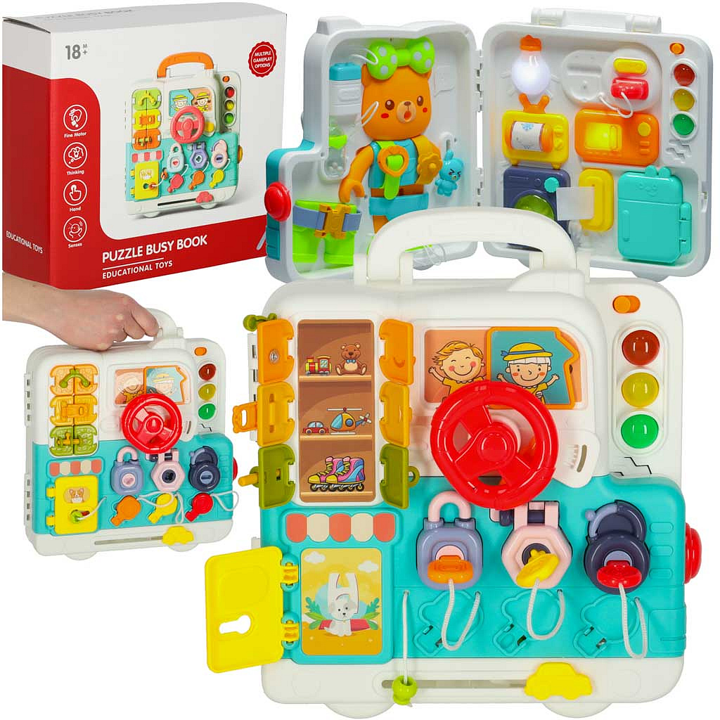 Manipulační stůl je skutečné mini-dobrodružství uzavřené v praktickém, lehkém kufříku, který si můžete vzít kamkoliv: k prarodičům, na dovolenou, k přátelům. Vypadá nenápadně, ale uvnitř čeká skutečný poklad barevných pohyblivých prvků. Zámky, knoflíky, světýlka, mini spotřebiče nebo přepínače způsobí, že každé dítě zde najde něco, co ho zaujme. Smyslová hračka, jako je manipulační kufřík, nejenže zabaví dítě během delšího odpoledne doma, ale stane se také skvělým společníkem na cestách, které, jak všichni dobře víme, mohou být náročné.