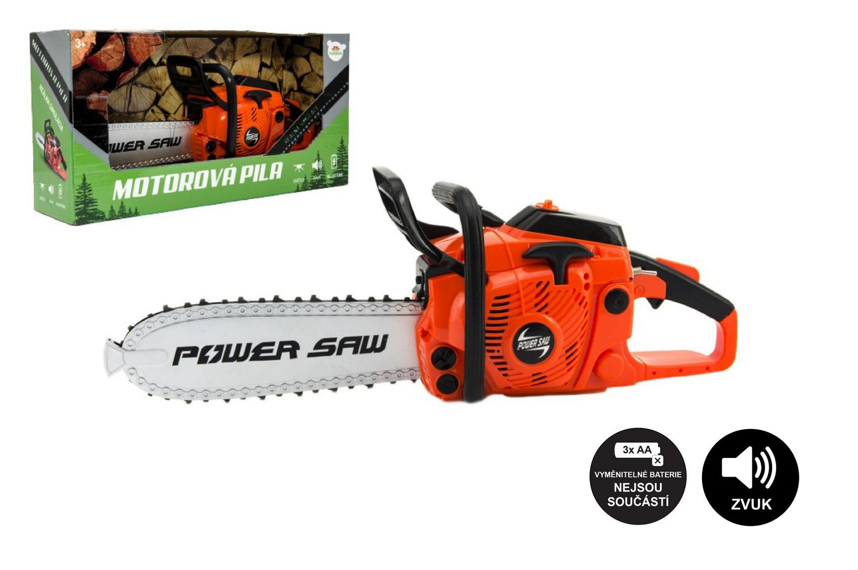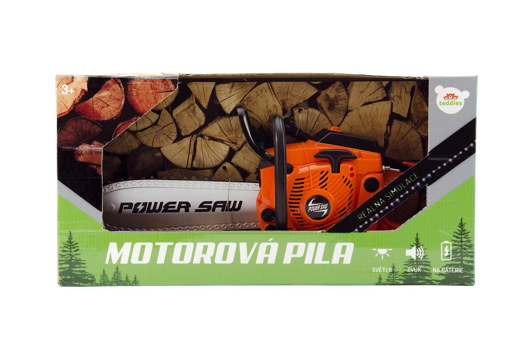 Motorová pila plast 40cm na baterie se zvukem v krabici 42x21,5x11cm