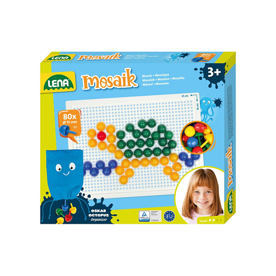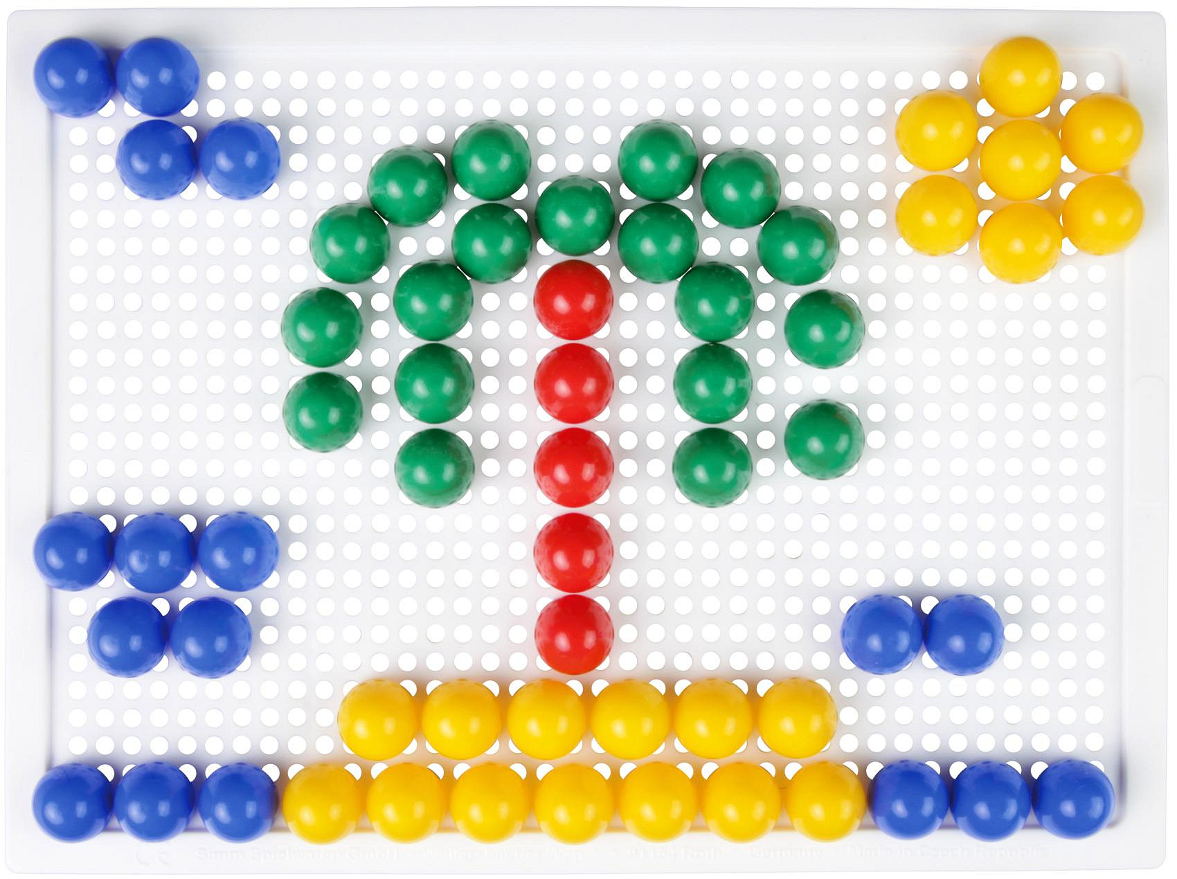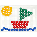 Skládejte barevné kloboučky na podkladovou desku. balení obsahuje 80 ks kloboučků a pytlíček na uložení. Předlohu najdete na zadní straně krabice. Průměr hlavičky kloboučku: 1,5 cm Rozměr podkladové desky: 21 x 16 cm Rozměr krabice: 24 x 21 x 3,5 cm Vhodné pro děti od 3 let