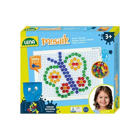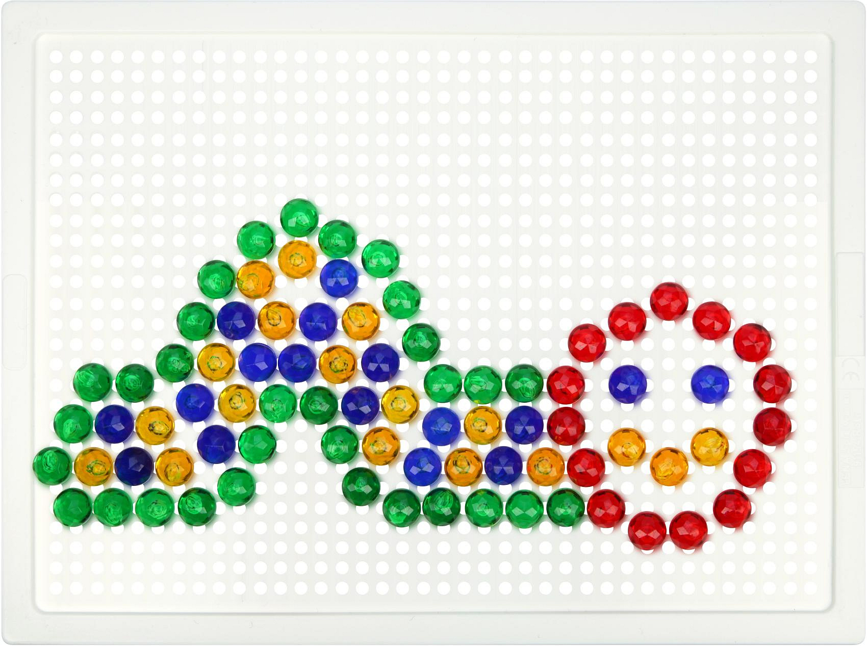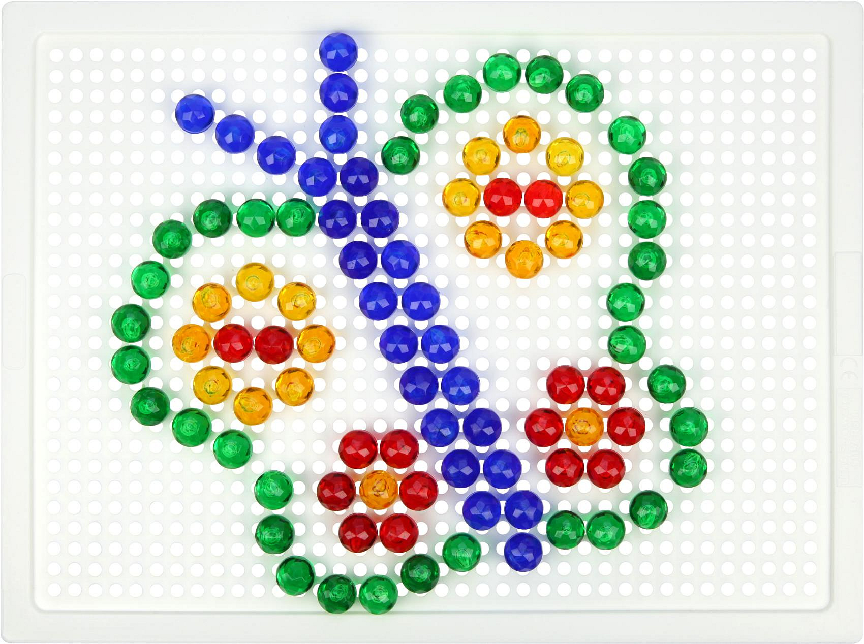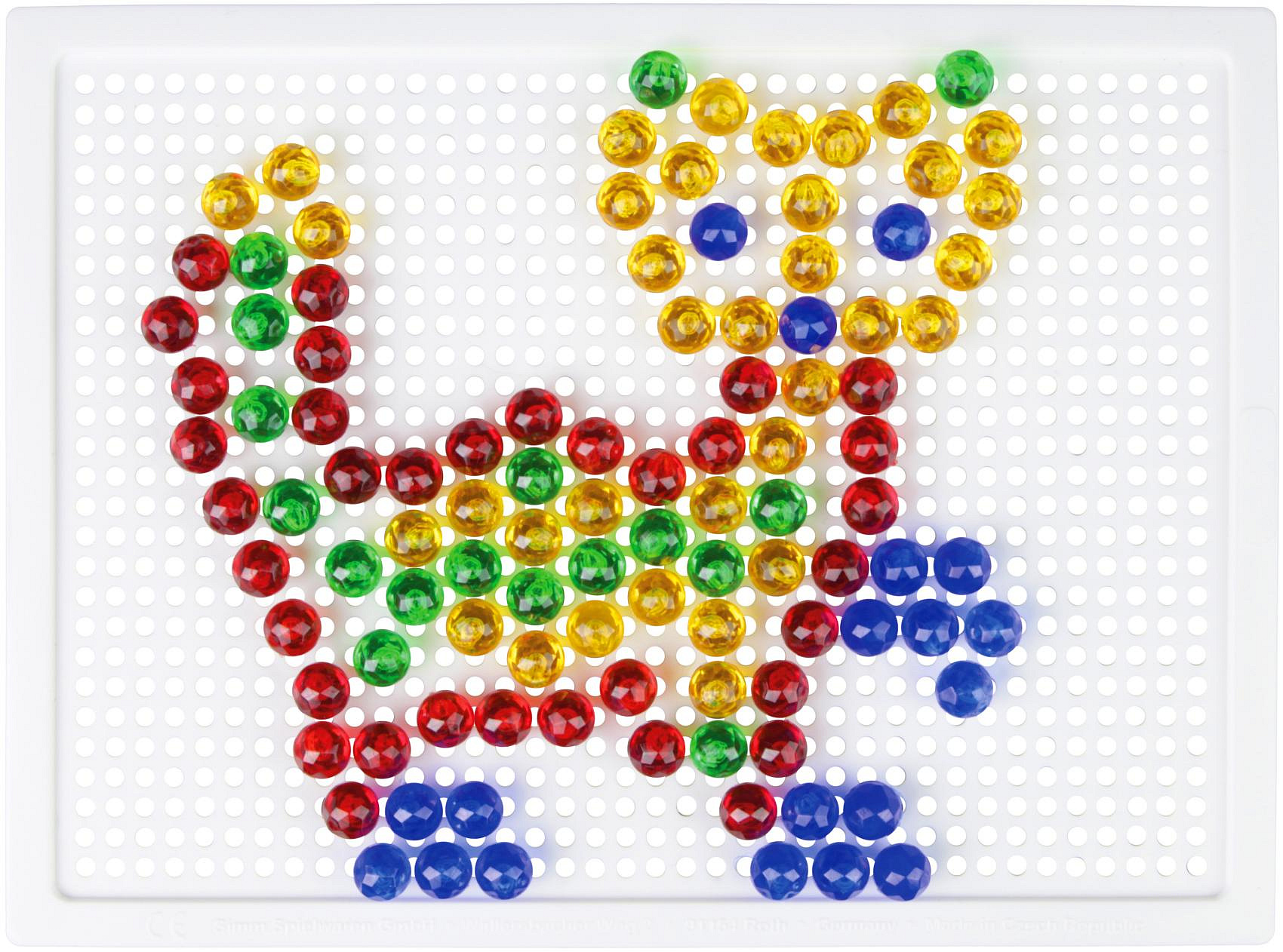 Skládejte barevné kloboučky na podkladovou desku. Balení obsahuje 140 ks kloboučků a pytlíček na uložení. Předlohu najdete na zadní straně krabice. Průměr hlavičky kloboučku: 1 cm Rozměr podkladové desky: 21 x 16 cm Rozměr krabice: 24 x 21 x 3,5 cm Vhodné pro děti od 3 let