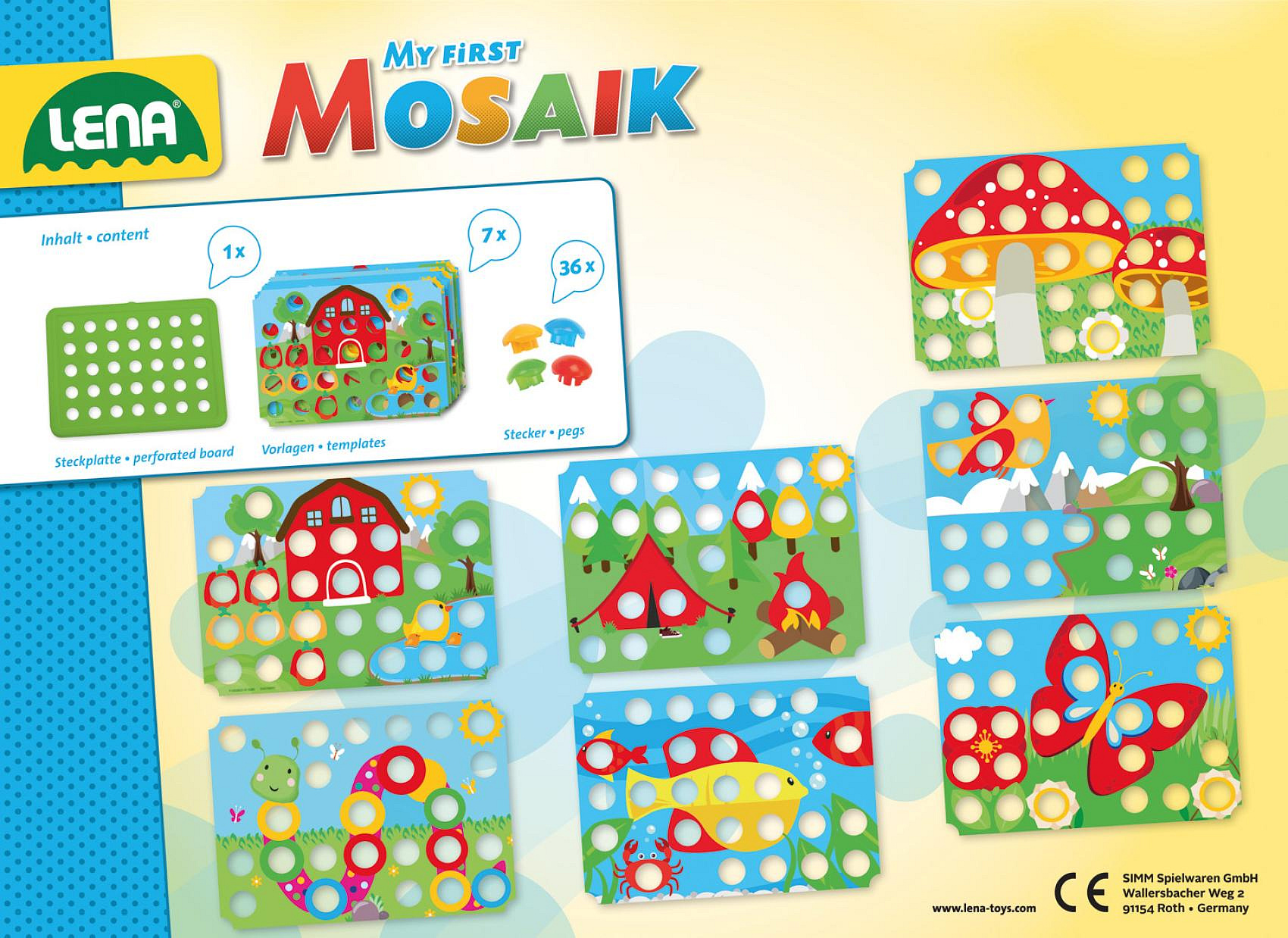 Mozaika klobouček příroda 3,2cm hladký 36ks + předlohy 7ks pro nejmenší v krabici 33x24x4cm 24m+