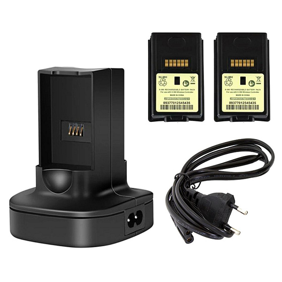 Dokovací stanice - nabíječka na 2 baterie z ovladačů Microsoft XBOX 360. Součástí balení jsou i 2 náhradní baterie do podložek! Nezbytná sada, díky které ušetříte čas na dodatečné dobíjení baterií! Už nebudete muset zastavovat hru a čekat, až se vaše buňky dobijí!