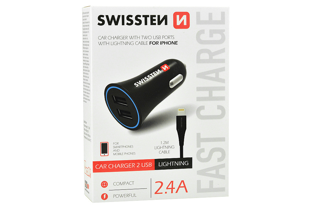 Nabíječka mobilů do auta SWISSTEN 2USB, Lightning - 2.4A