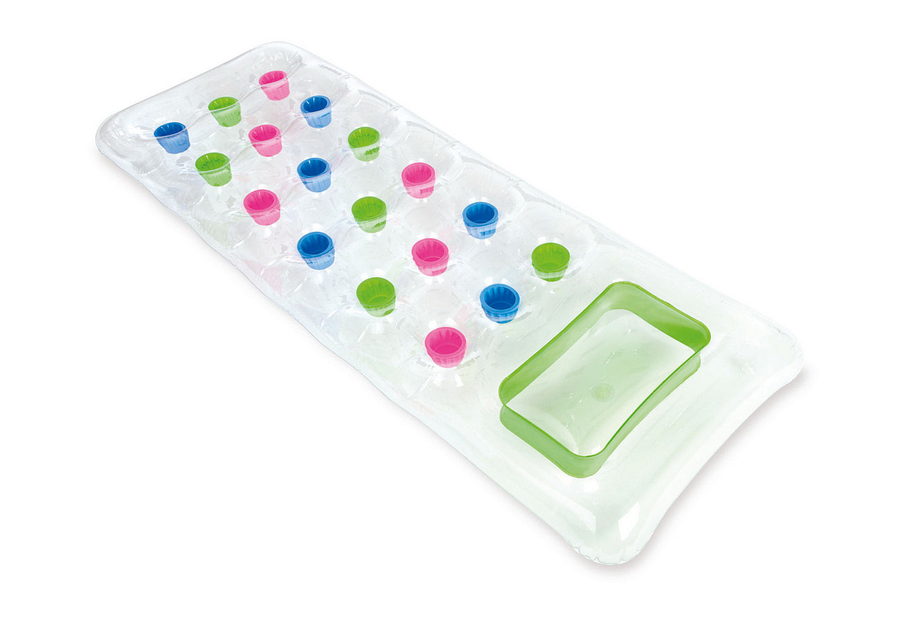 S opalovacím nafukovacím lehátkem na vodu s podhlavníkem si skvěle užijete horké letní dny v bazénu i na moři. Součástí balení je opravná sada. Maximální nosnost 100 kg. Je vyrobeno z pevného transparentního vinylu (0,28mm), který vám při opalování umožní sledovat dění pod vodní hladinou. 2 nafukovací komory. Rozměry 188 x 71 cm.