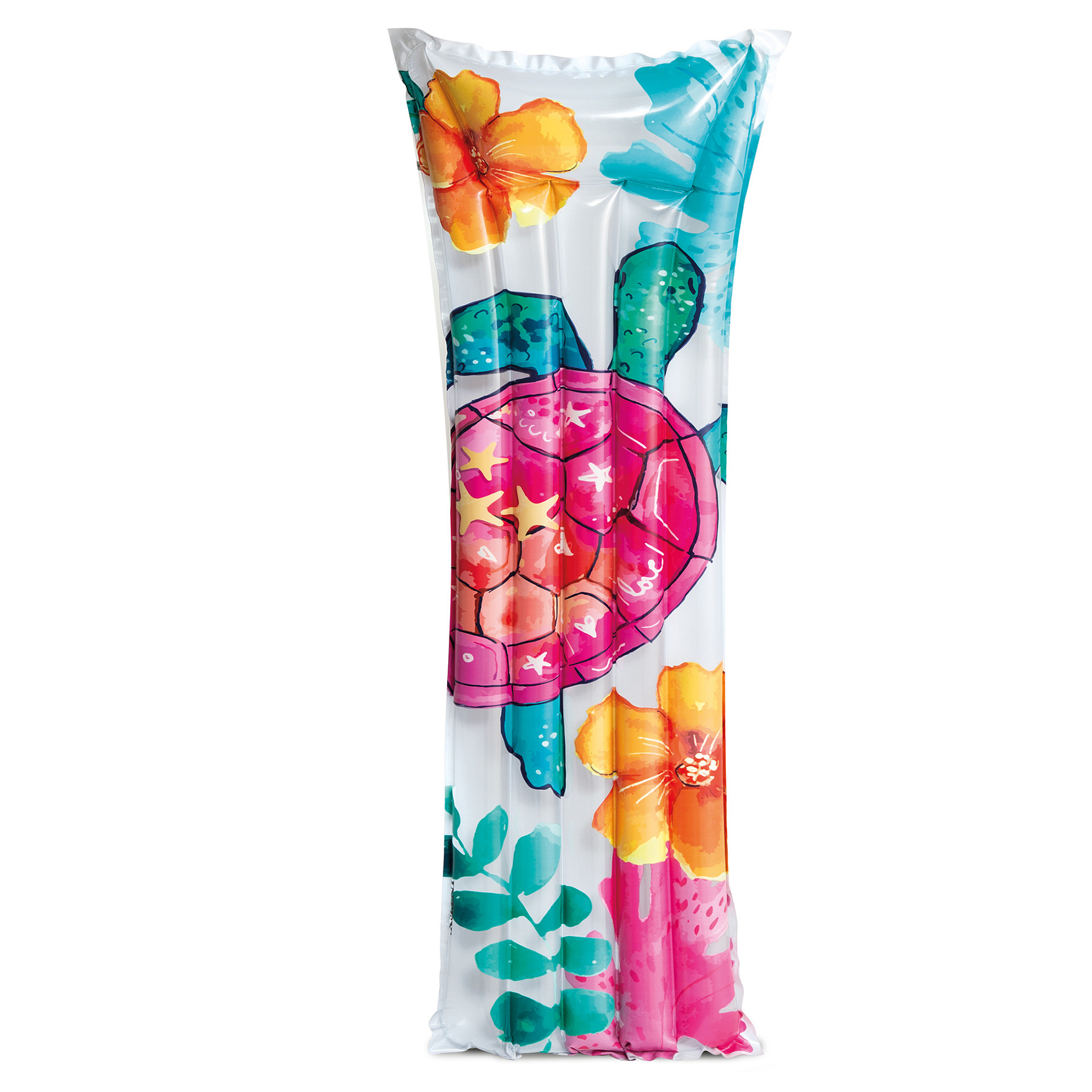 Nafukovací matrace s barevným potiskem o velikosti 183 x 69 cm. Velice odolný materiál vinyl. Dvě nafukovací komory. Komfortní nafukovací podhlavník. Bez obsahu ftalátů. Maximální nosnost: 100 kg Síla stěn: 0,18 mm
