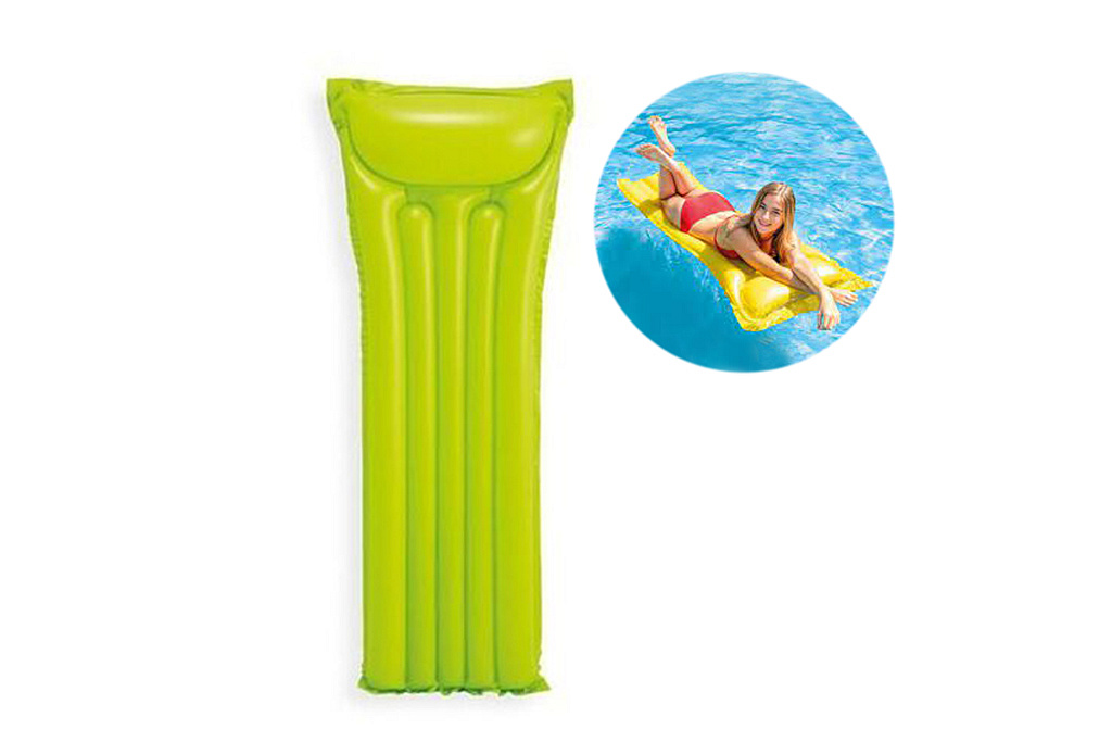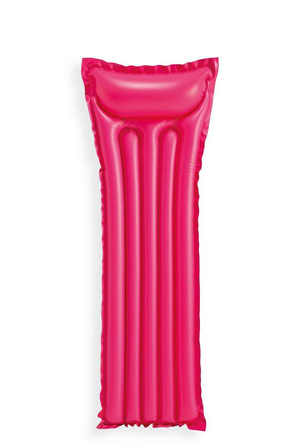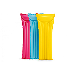 Nafukovací lehátko o rozměrech 183 x 69 cm, v zářivých barvách a s integrovaným polštářem. 2 vzduchové komory a vinyl o tloušťce 0,20 mm zajišťují pevnost a příjemný komfort při ležení. V nabídce ve 3 různých barvách. Maximální zatížení: 80 kg.