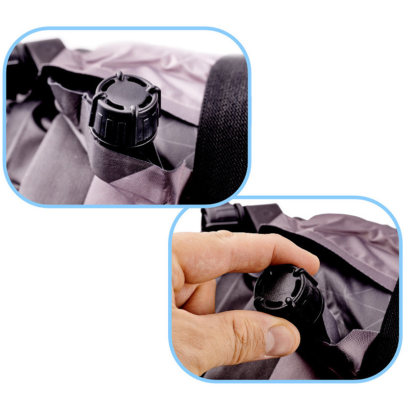W górnej części materaca znajduje się grubsza, pompowana część służąca jako poduszka, pozwoli to zaoszczędzić miejsce – brak konieczności zabierania ze sobą poduszek oznacza mniej bagaży!