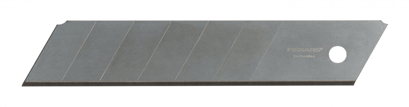 Náhradní břity pro odlamovací nože Fiskars Pro CarbonMax™, určené pro obecné řezání. Listy CarbonMax™ jsou vybaveny patentovanou ochranou Fiskars, která zůstává ostrá až 24x delší dobu než běžné nože. Čepele byly podrobeny laboratornímu testování a ověřování. Balení obsahuje 5 ks čepele a také nože Fiskars.