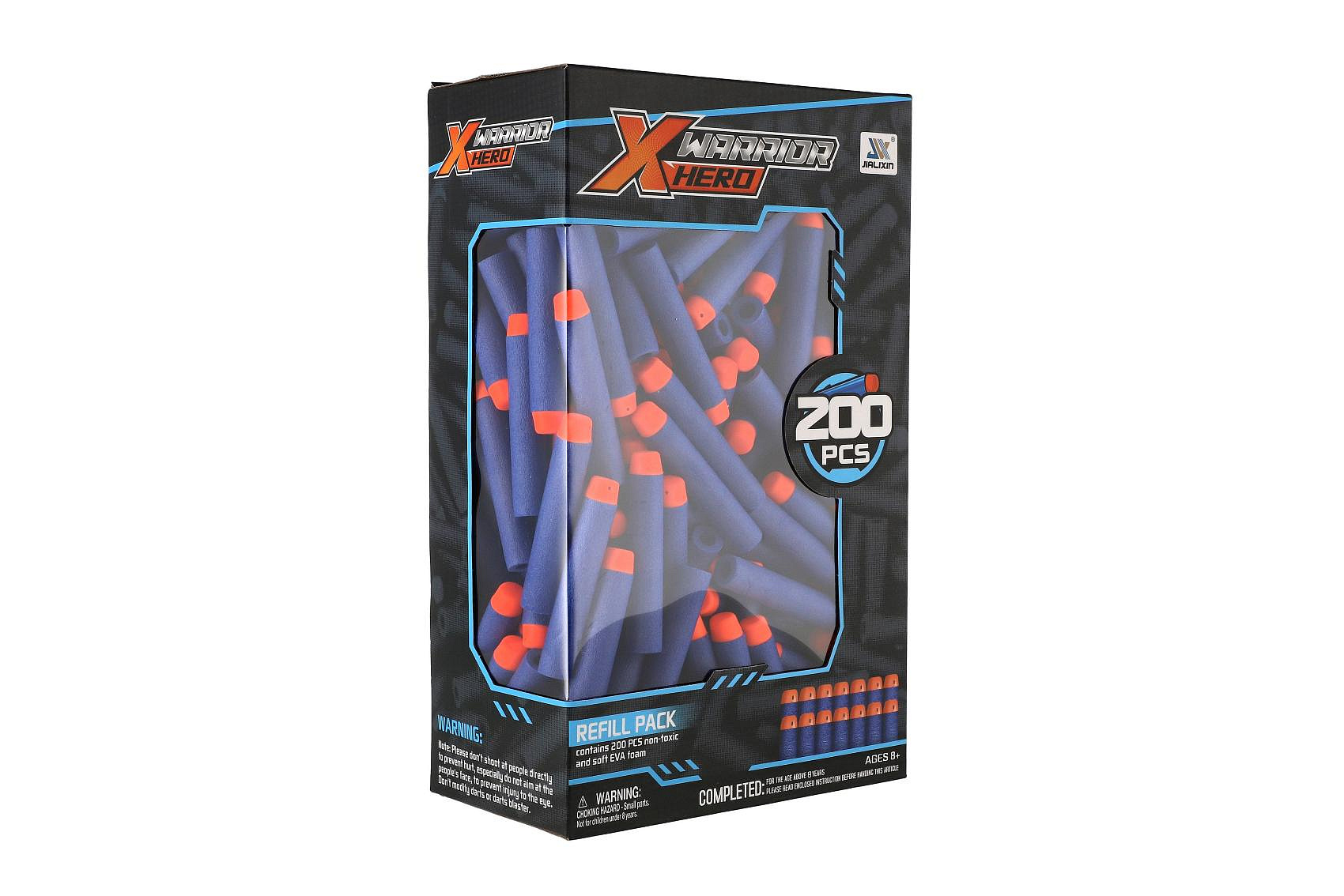 Sada nábojů, které pasují do pistolí na pěnové náboje. S těmito náboji vás nikdo nepřemůže. Noste je stále při sobě, třeba za opaskem. Balení obsahuje 200 kusů náhradních šipek. Náboje jsou vyrobeny z pěnové hmoty. Nekonečná zábava může začít. Rozměry balení 17 x 28 x 9 cm. Vhodné pro děti od 8 let.