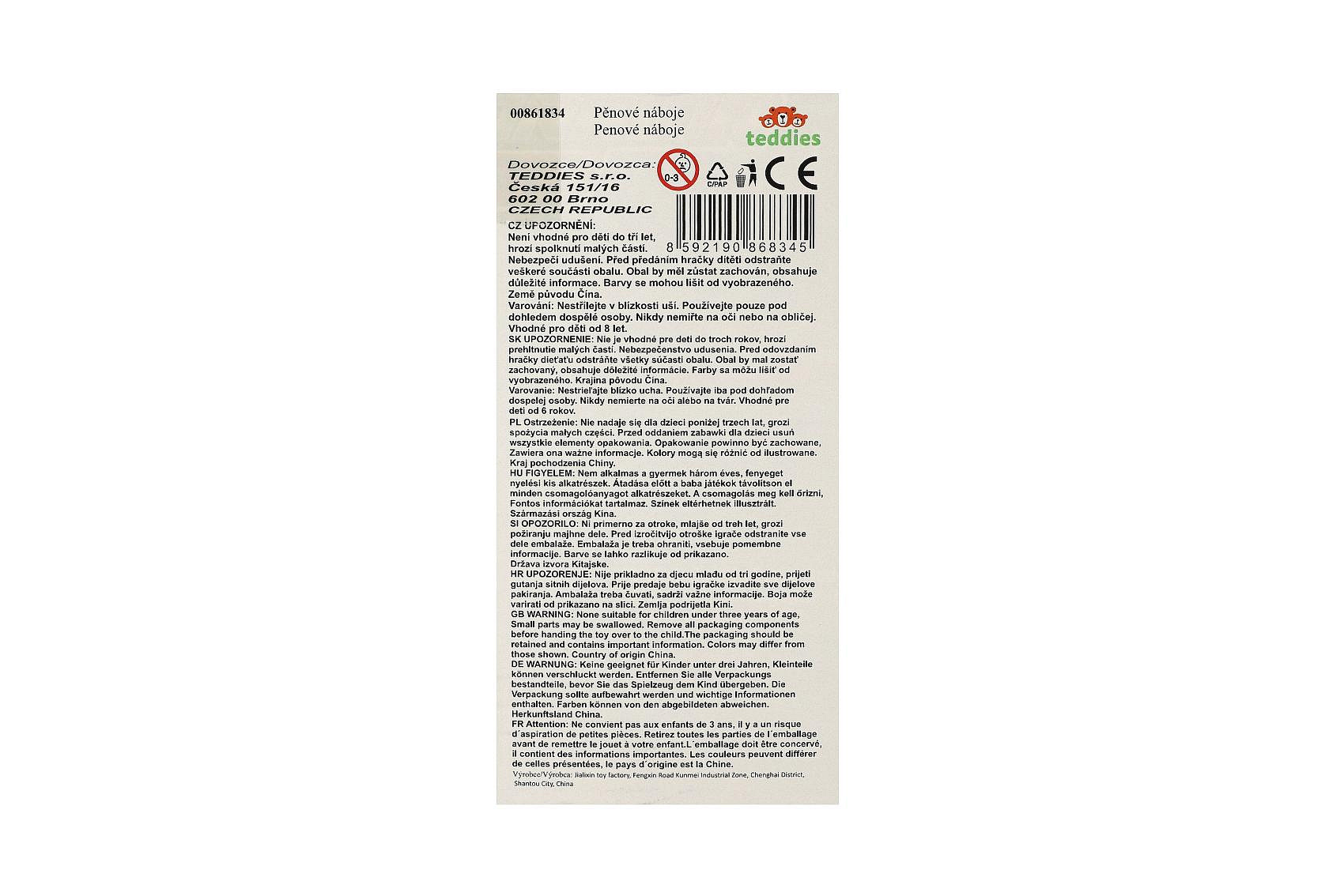Popis Náhradní pěnové náboje do pistole 200ks v krabici 17x28x9cm