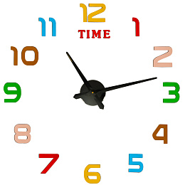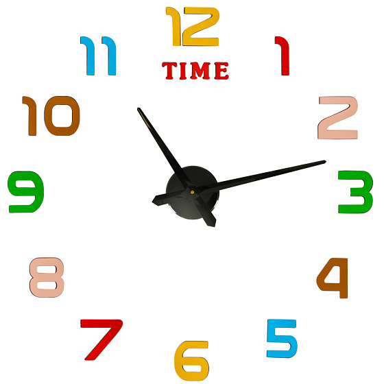 NÁSTĚNNÉ HODINY SAMOLEPICÍ 12 ČÍSEL 80-90 CM ČERNÉ RUČIČKY BAREVNÉ
