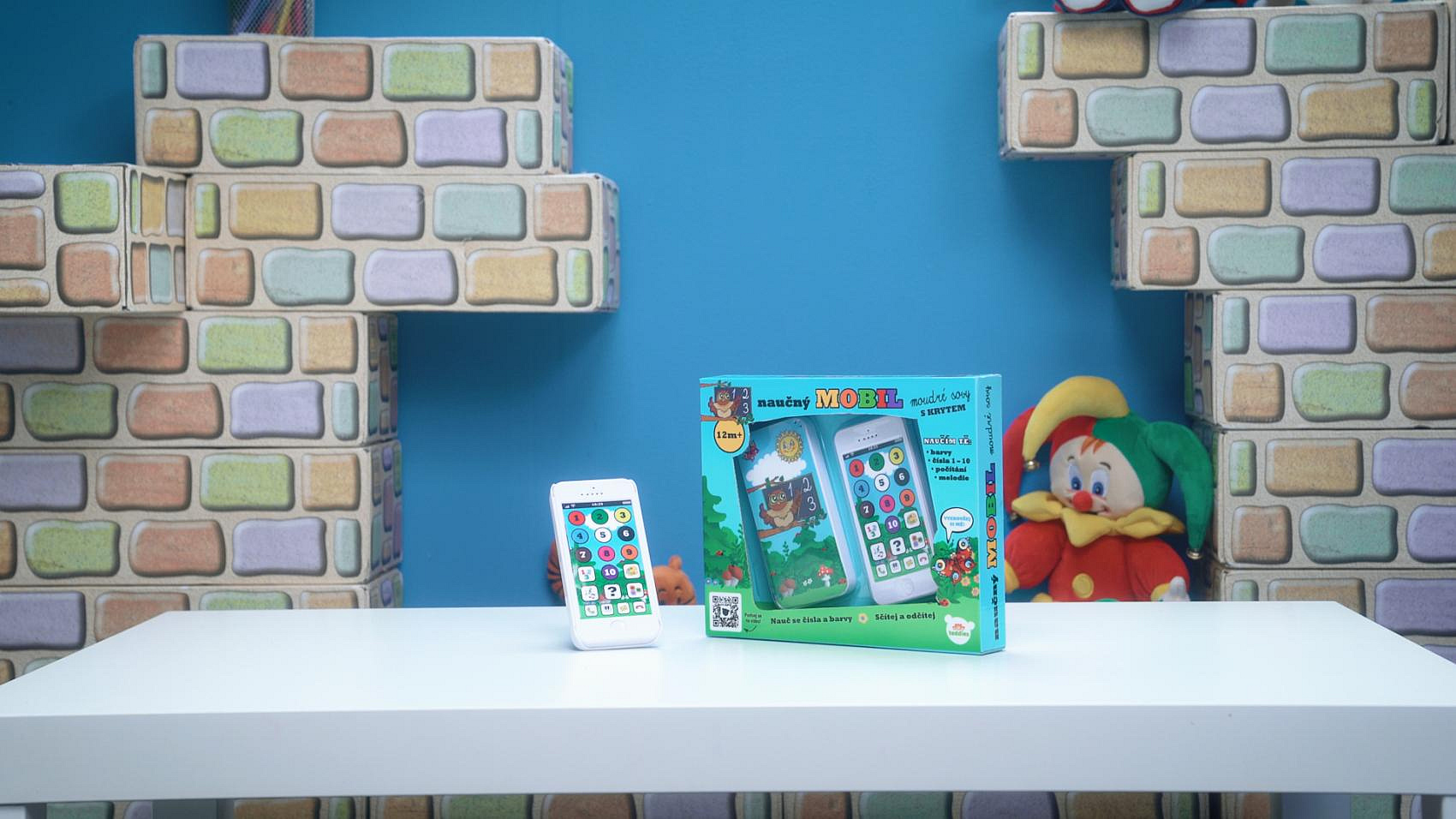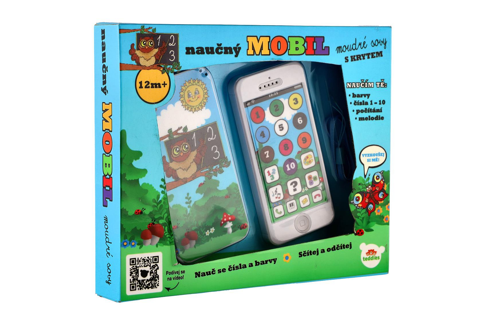 Naučný mobilní telefon moudré sovy s krytem plast na baterie se zvukem v krabici 22x18x3,5cm 12m+