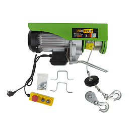 Součástí balení: 2 úchytky, ocelové lano. Příkon (W) 1600 Maximální nosnost bez kladky/s kladkou (kg) 500/1000 Výška zdvihu bez kladky/s kladkou (m) 20/10 Rychlost zdvihu bez kladky/s kladkou (m/min) 8/4 Průměr lana (mm) 6 Délka lana (m) 20