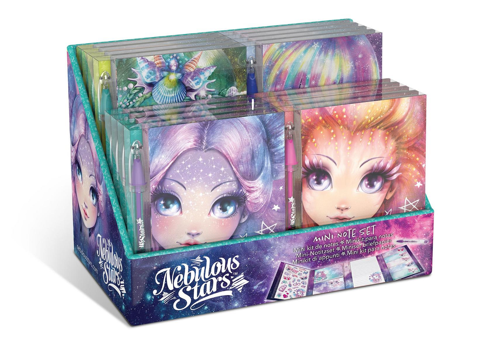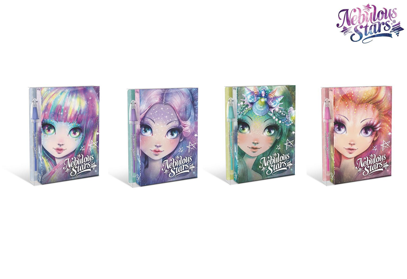 Nebulous Star deník/deníček s propiskou 4 barvy v blistru 11x13x2cm 16ks v boxu