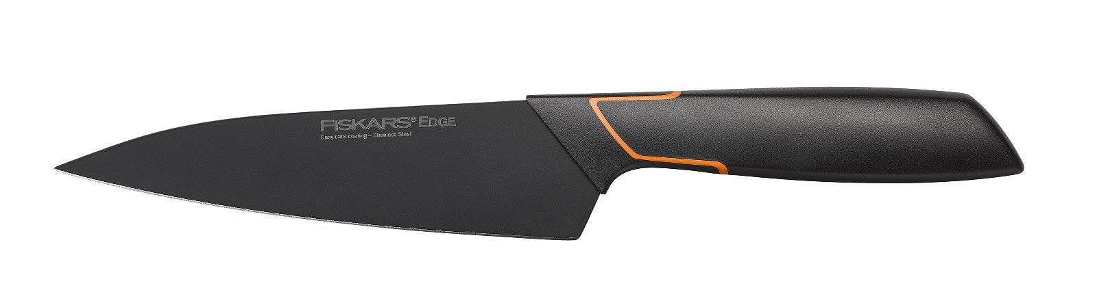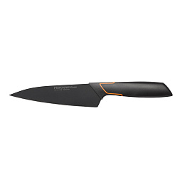 Fiskars Edge mají elegantní, moderní design a inovativní prvky. Speciální povrch dokáže mnohem víc, než jen dodat nožům atraktivní černý vzhled – také se díky němu snáze udržují. Masivní nůž s vysokou silnou čepelí. Vhodný ke krájení potravin střední velikosti.