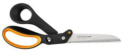 • Nůžky s vroubkovanou čepelí pro snazší stříhání bez klouzání materiálu