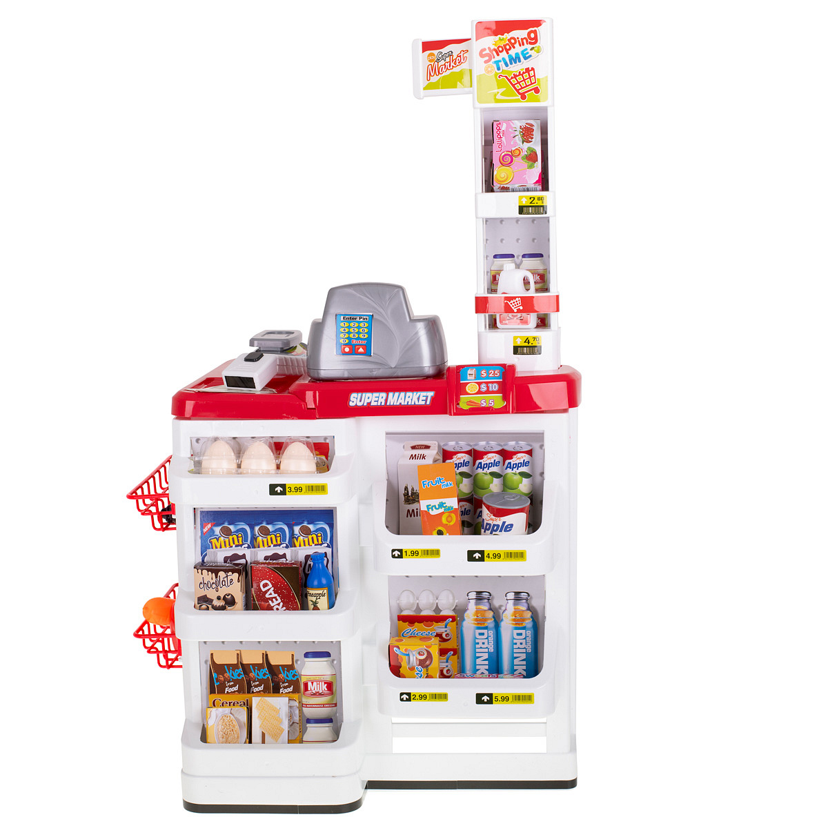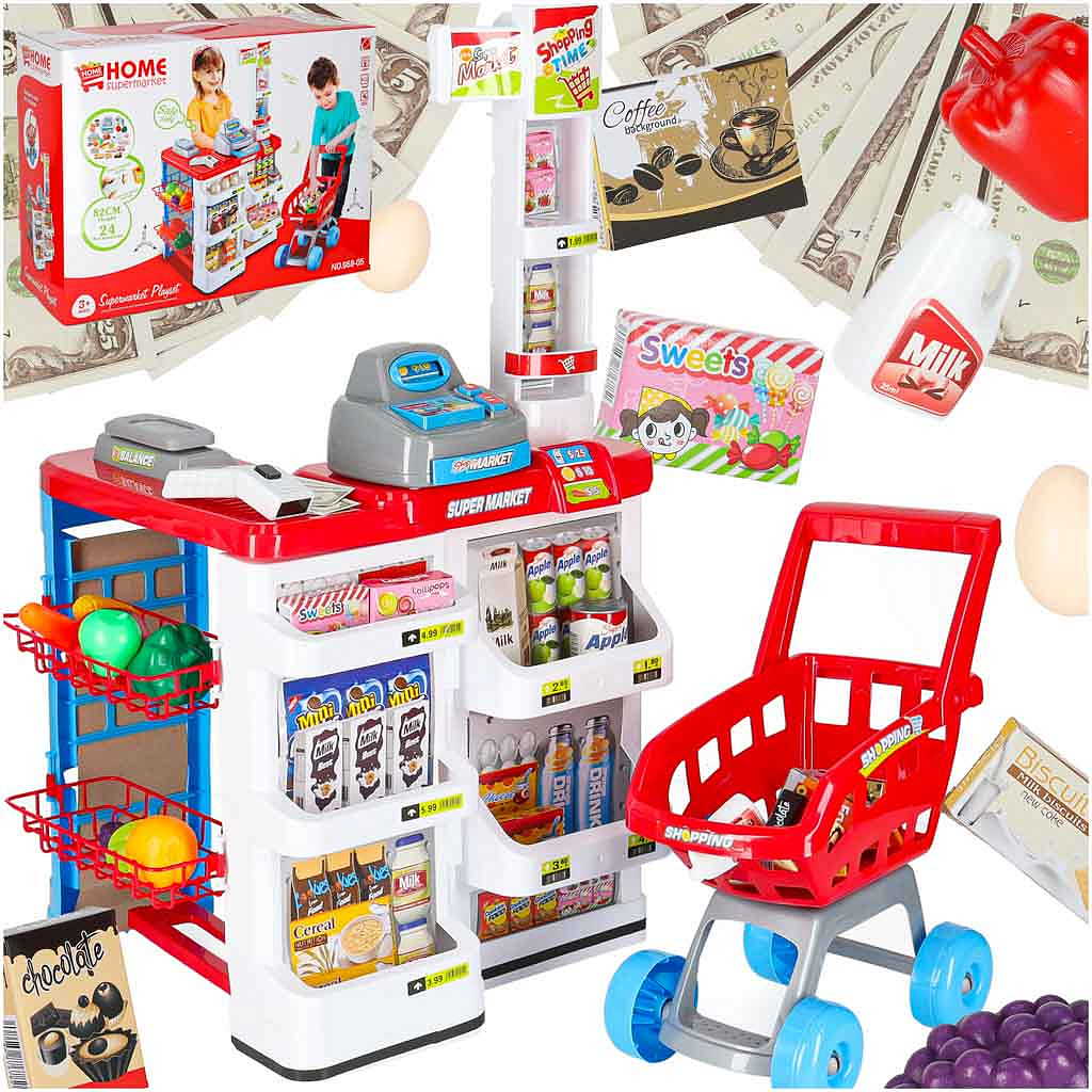 Zamień dziecięcy pokój w pełnowymiarowy sklep spożywczy dla dzieci! Ten niesamowity zestaw do zabawy w sklep to prawdziwa gratka dla małych miłośników odgrywania ról. Zabawkowy supermarket z kasą fiskalną, wagą sklepową i wózkiem zakupowym to kompletna stacja sprzedaży, która rozwija wyobraźnię, uczy odpowiedzialności i zapewnia godziny świetnej rozrywki.