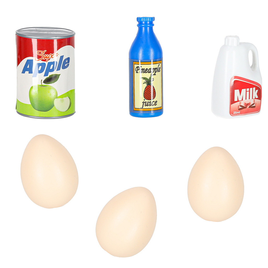 W zestawie znajduje się mnóstwo kolorowych, bezpiecznych i realistycznych elementów: plastikowe owoce i warzywa, jajka, napoje, a także kartonowe opakowania ciastek i cukierków. Dzięki nim Twoje dziecko może odgrywać robienie zakupów, sortować produkty i uczyć się rozpoznawania artykułów spożywczych. Zestaw z owocami i warzywami idealnie łączy edukację z zabawą!