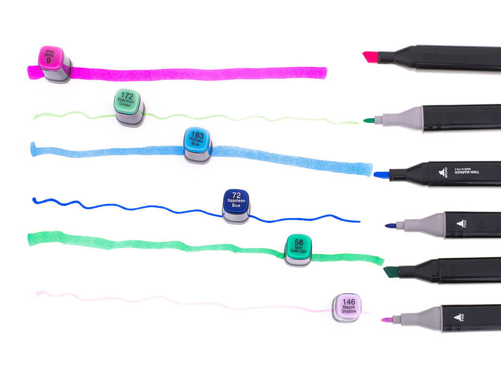 Każdy mazak posiada 2 końcówki, jedną cienką idealną do konturowania lub pisania, drugą grubszą, która doskonale nada się do kolorowania lub zakreślania istotnych informacji.