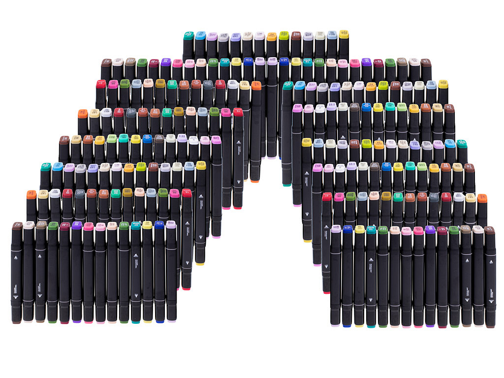 Zestaw zawiera 168 sztuk markerów w różnych kolorach.
