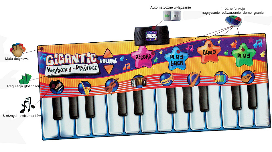 - demo - pianinko přehrává mnoho hotových melodií jako "Jingle bells", "Pro Elišku", každá černá klávesa je jiná, hotová melodie.