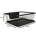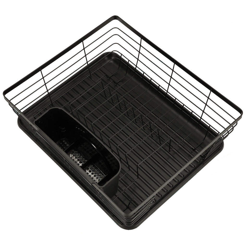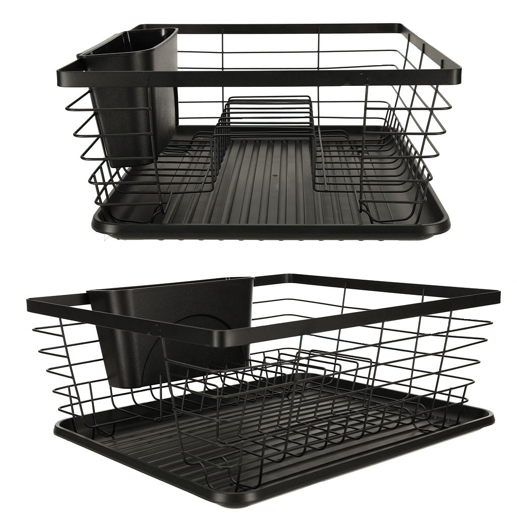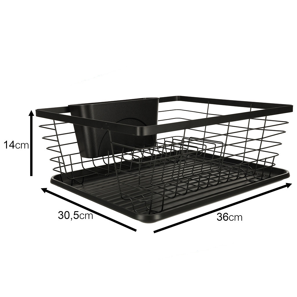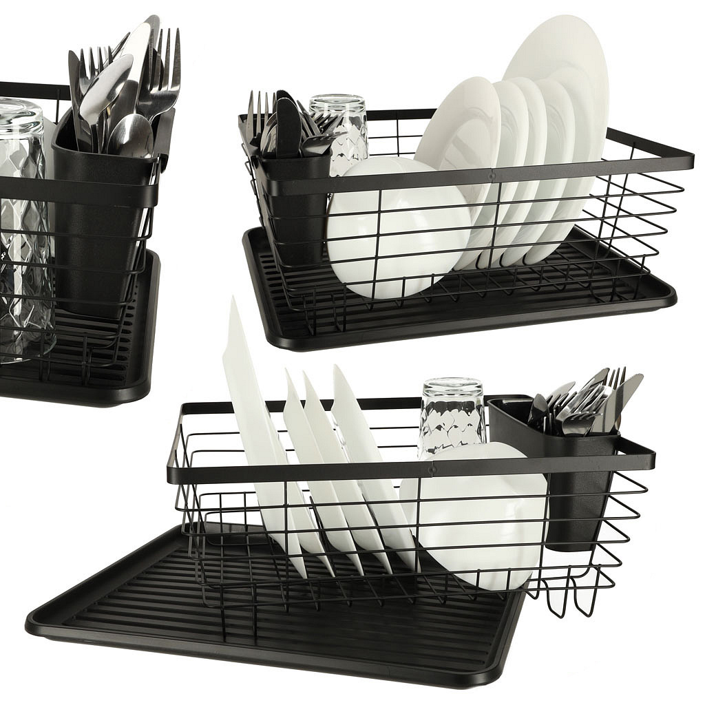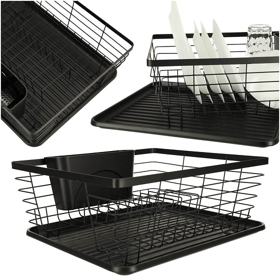 SUSZARKA DO NACZYŃ OCIEKACZ NA NACZYNIA SZTUĆCE TACA CZARNA Ta stylowa suszarka do naczyń to nie tylko praktyczne rozwiązanie, ale również elegancki dodatek do Twojej kuchni. Oferuje wiele funkcji ułatwiających codzienne suszenie naczyń. Wygodny i praktyczny, umożliwiający swobodne suszenie naczyń bez konieczności zajmowania przestrzeni na zlewie. Specjalny pojemnik na sztućce pozwala na ich segregację i przechowywanie w jednym miejscu, co ułatwia późniejsze odnalezienie. Pod spodem suszarki znajduje się tacka zbierająca wodę, zapobiegając rozlewaniu się wody na blacie kuchennym. Suszarka posiada wystarczającą przestrzeń, aby pomieścić dużą ilość naczyń, sztućców i akcesoriów kuchennych. Uniwersalny czarny kolor dodaje elegancji i nowoczesności, jednocześnie łatwy do utrzymania w czystości. Wykonana z wysokiej jakości metalu i plastiku, suszarka zapewnia trwałość i długotrwałe użytkowanie. Tworzywo: Metal, Plastik Kolor: Czarny Ociekacz Duży: 36 cm x 30,5 cm x 14 cm Ociekacz na Sztućce: 19,5 cm x 7 cm x 10 cm Plastikowa Mata: 36 cm x 29 cm Opakowanie: 36 cm x 30,5 cm x 14 cm Produkt zapakowany w estetyczne foliowe opakowanie, gotowe do użycia w Twojej kuchni!Ociekacz na Blat Kuchenny