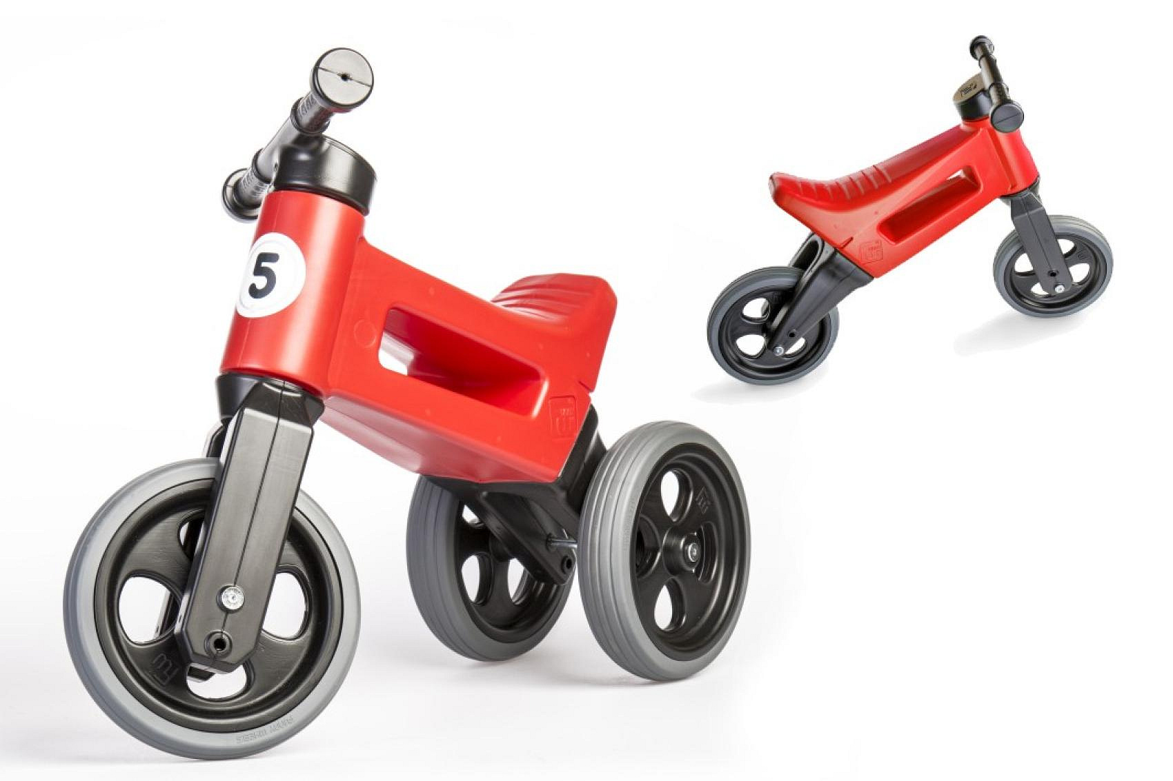 Popis Odrážedlo FUNNY WHEELS Rider Sport červené 2v1, výška sedla 28/30cm nosnost 25kg 18m+ v sáčku