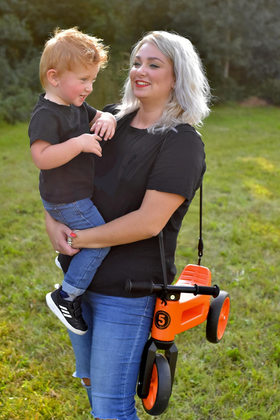 Odrážedlo FUNNY WHEELS Rider SuperSport oranž. 2v1+popruh, výš. sedla 28/30cm nos. 25kg 18m+ v krabi