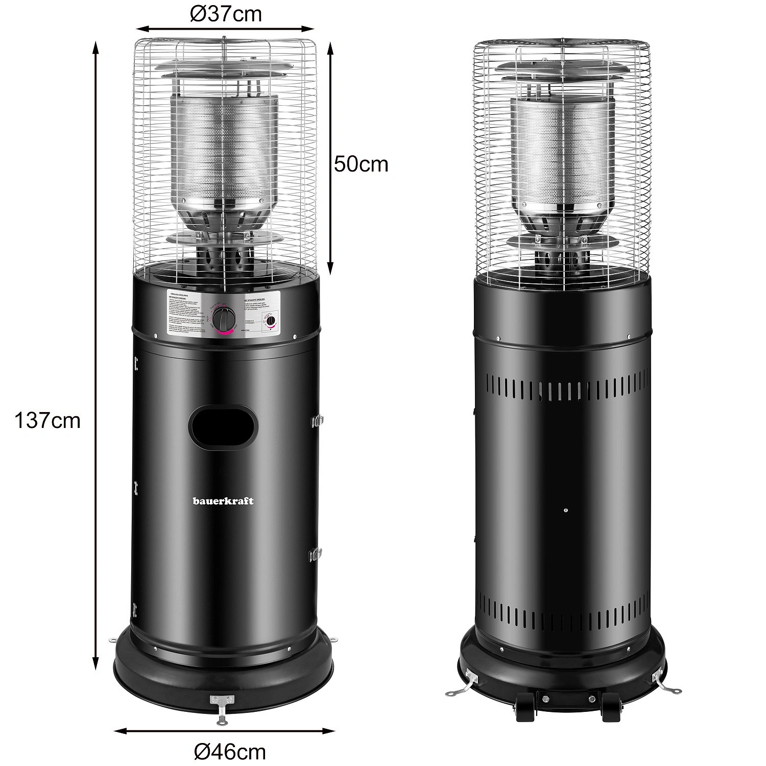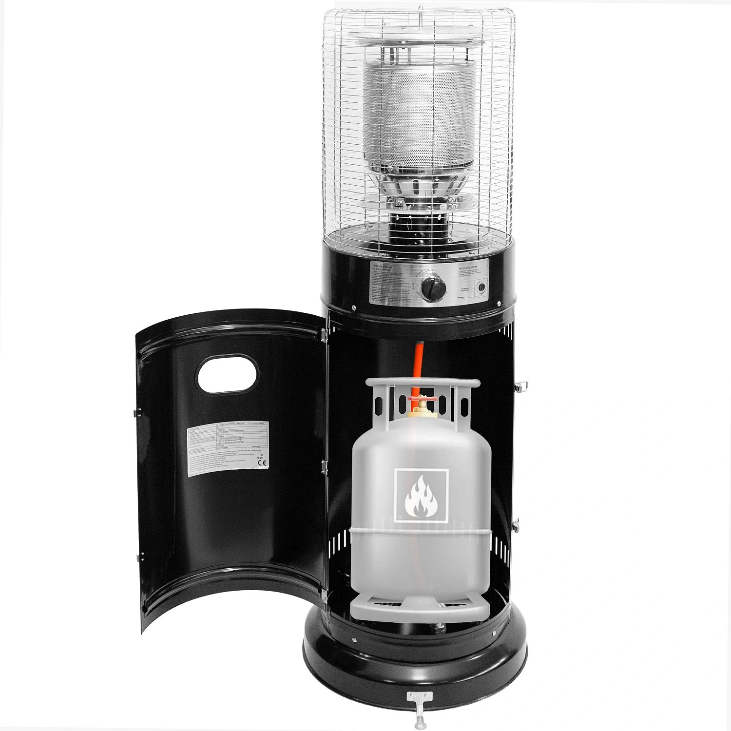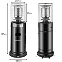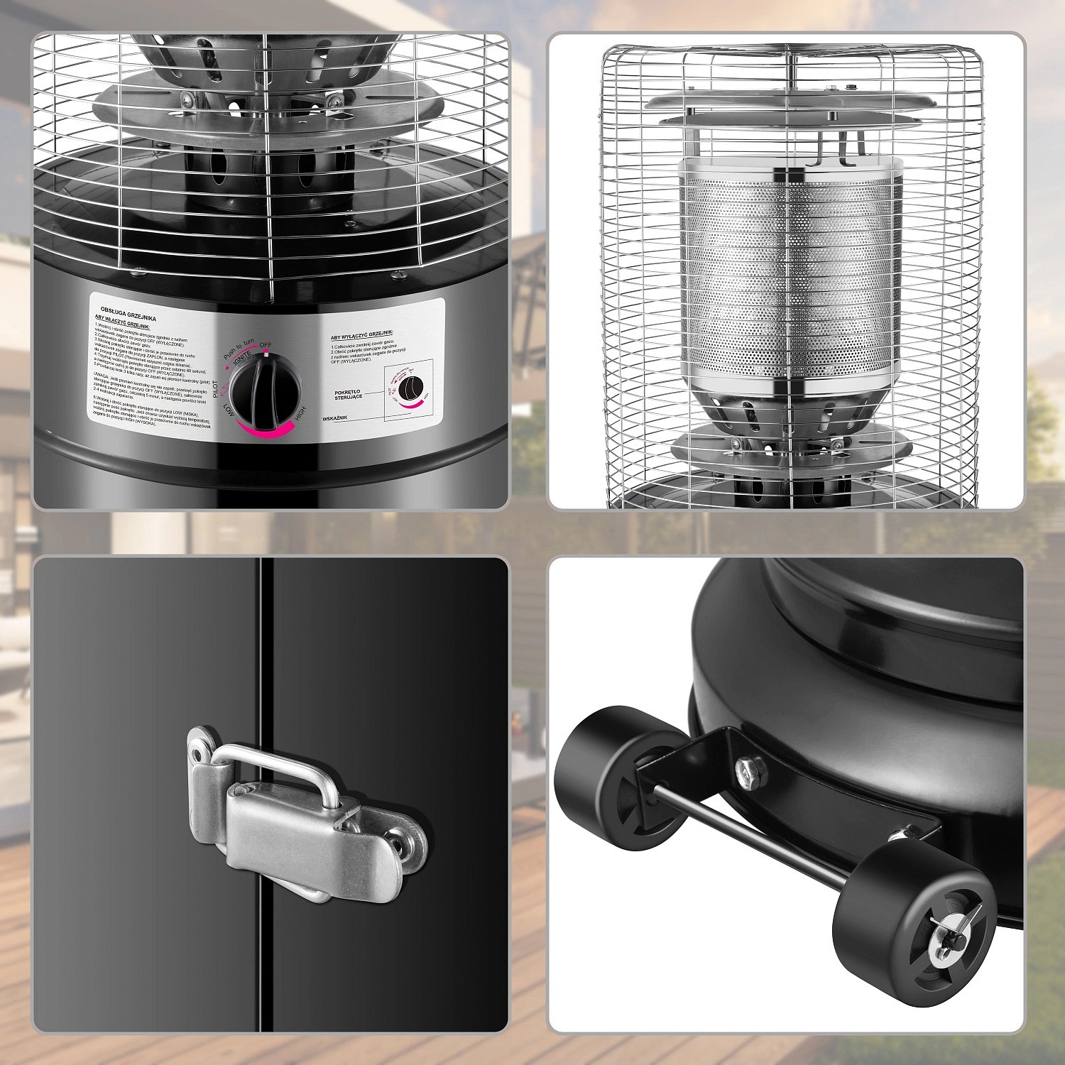 Its modern cylindrical design with a metal body and tempered glass cover attracts attention and fits perfectly into terraces, restaurant gardens, and home patios. This gas heater is not only a practical heat source but also an elegant decorative element that transforms any space into a cozy relaxation area. It allows you to enjoy a unique atmosphere and warmth regardless of weather conditions.