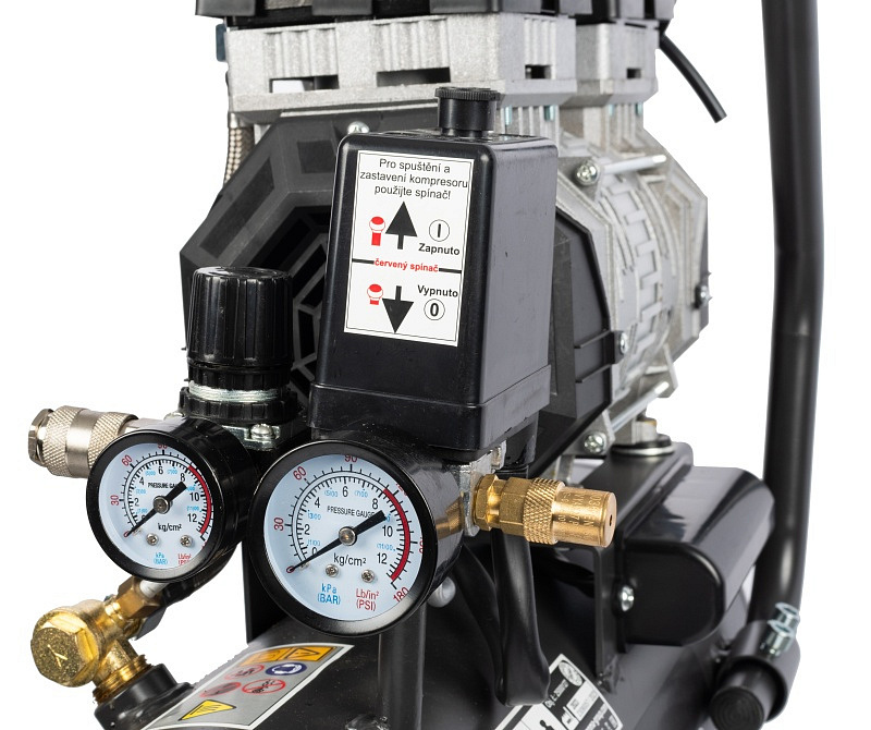 - Kompresor je vybaven manometrem vzdušníku i manometrem pro kontrolu pracovního tlaku
