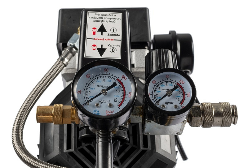 - Kompresor je vybaven manometrem vzdušníku i manometrem pro kontrolu pracovního tlaku