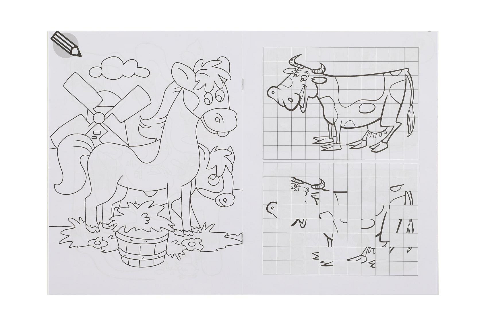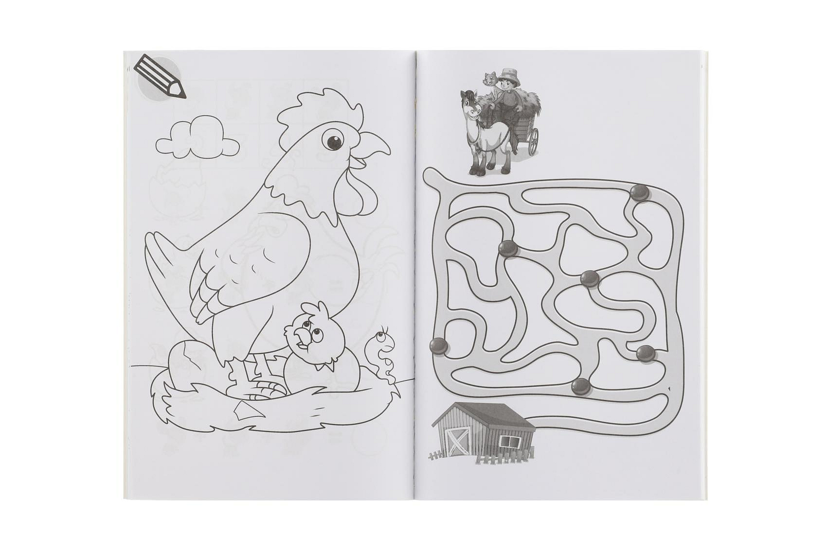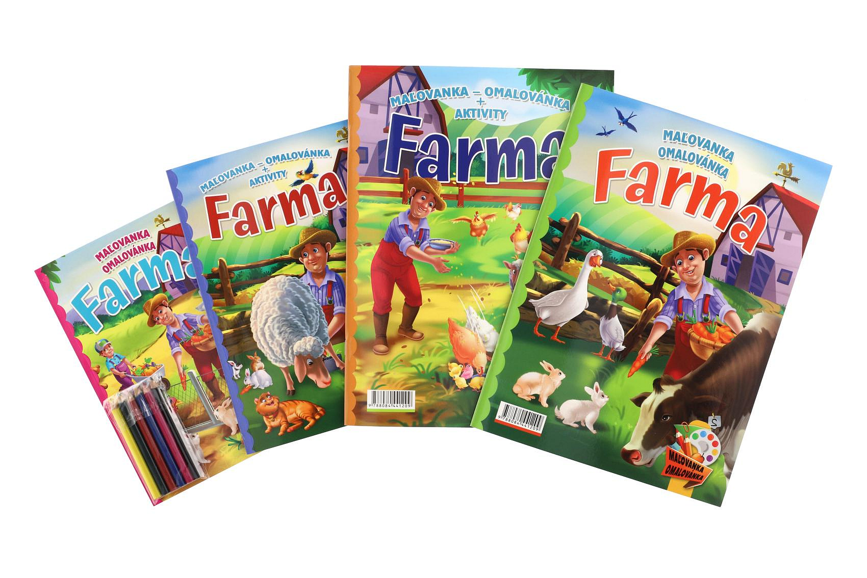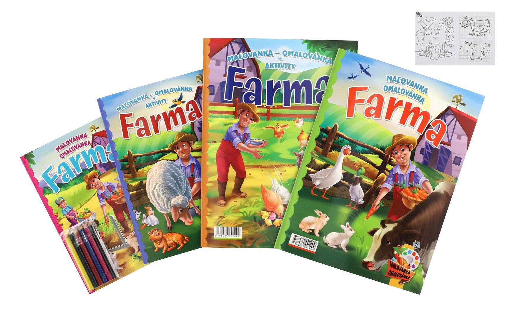 Omalovánky+aktivity/Maľovanky+aktivity Na farmě/Na farme 4ks + pastelky CZ+SK verze v sáčku 21x29cm