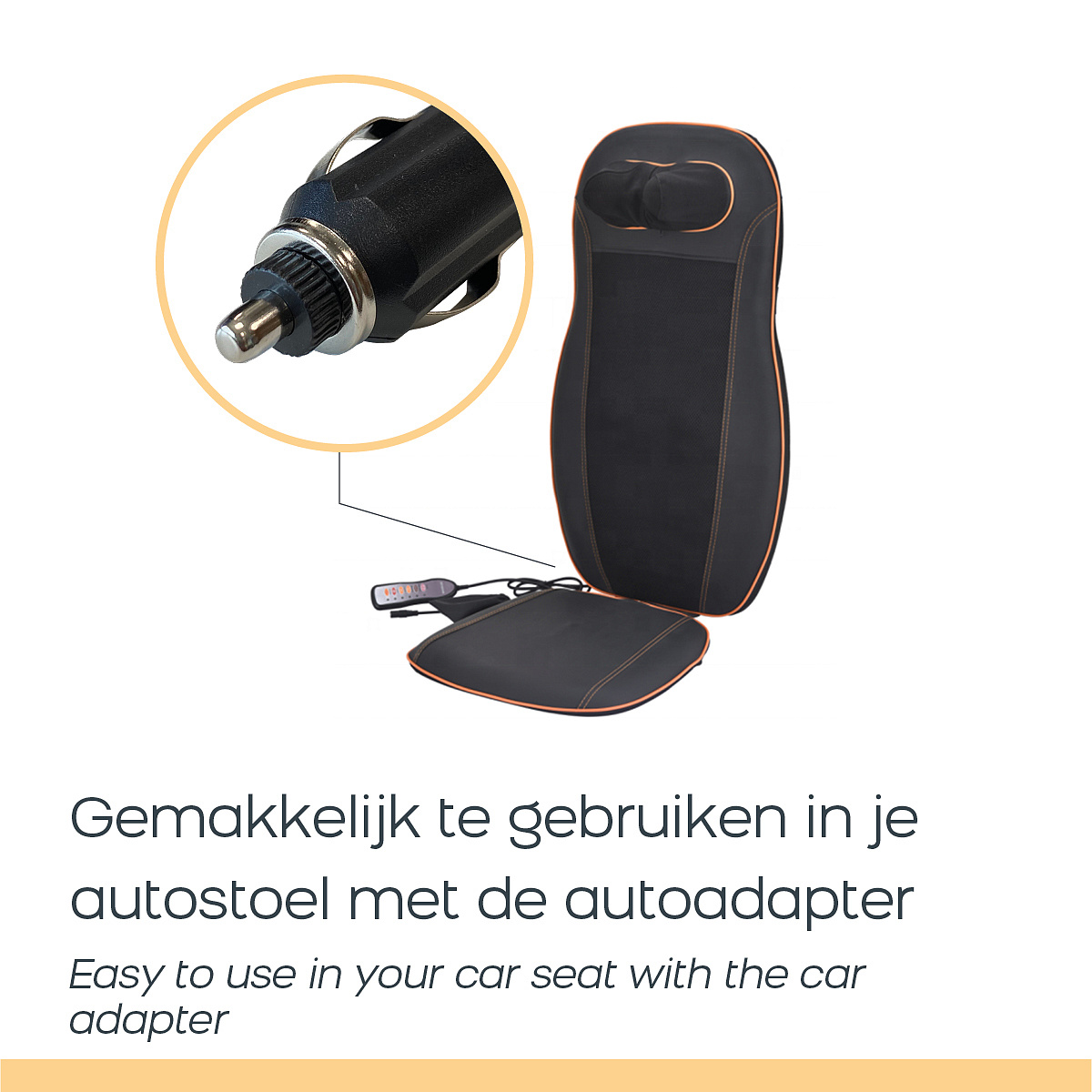 You can easily operate the massage chair cushion with the remote control. And thanks to the special car adapter, you can also use it when you're not at home. Relax your whole body with the Orange Care Massage Seat Cushion!