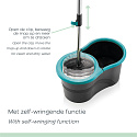 Thanks to the ingenious rotating mechanism in the handle of the mop, the mop always has the desired humidity level. Place the mop vertically in the special centrifuge attachment of the bucket and push the mop up and down to activate the spinning effect of the mop. This effectively removes excess water and dirt from the mop. This eliminates the need to touch dirty water or wring out a wet mop, ensuring a hygienic and mess-free cleaning experience. Moreover, bending down to wring out the mop is no longer necessary!