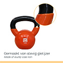 The Vinyl kettlebell from Orange Gym is made of cast iron and has a vinyl coating. This gives you a firm and comfortable grip and also protects your floor against bumps. The Orange Gym kettlebells are available in different weights and therefore suitable for both beginners and experienced athletes.