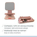 A big advantage of this standard is that you can use it for many different devices. From smartphones and tablets to even e-readers. This makes the holder ideal for working, watching videos, reading a good book and playing video games. The slim and compact design of the tablet and phone stand allows you to easily store it in your laptop bag or backpack after use and take it anywhere. Perfect for traveling or on the go.