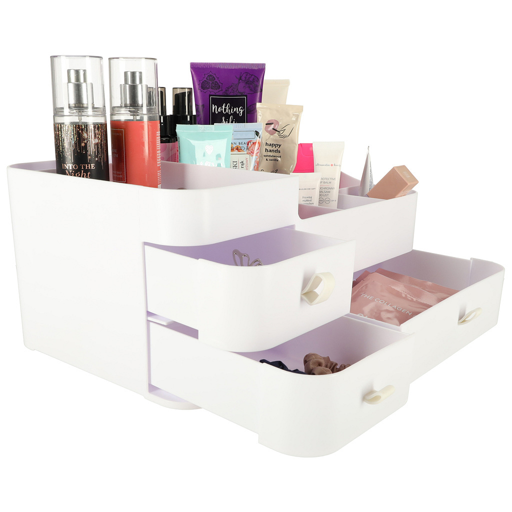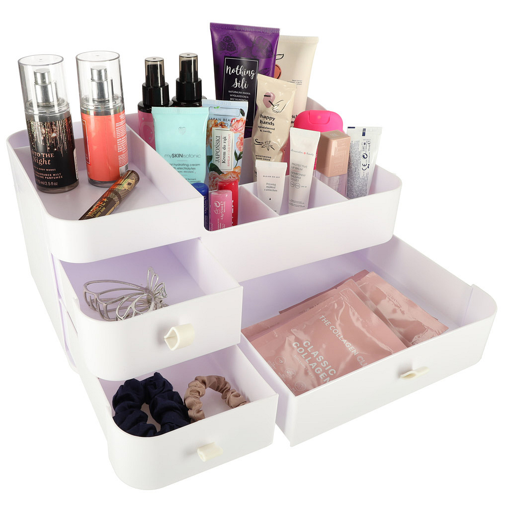 Organizer wyposażony jest w trzy szuflady, które gładko się wysuwają, co zapewnia łatwy dostęp do zawartości, a jednocześnie pozwala utrzymać wszystko w jednym miejscu, bez bałaganu.
