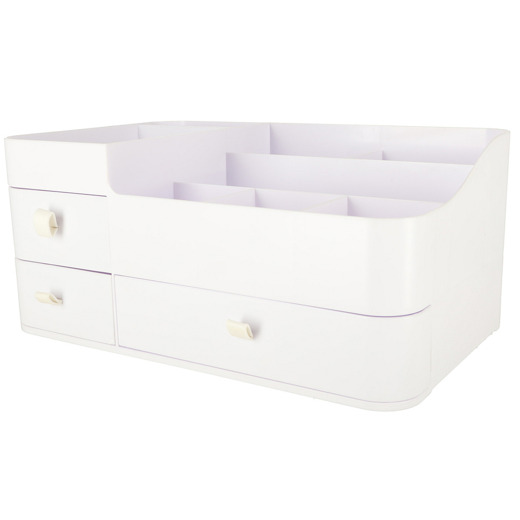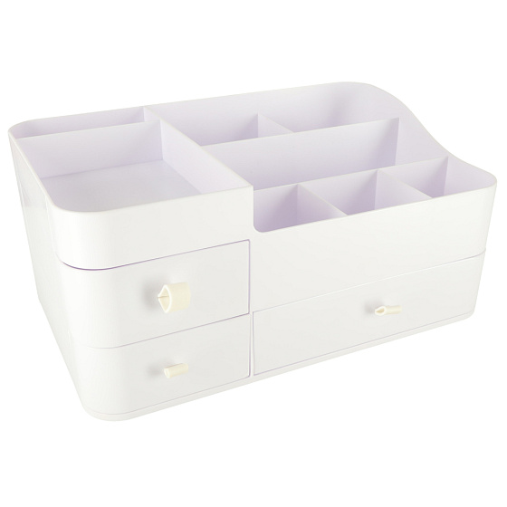 Nowoczesny, minimalistyczny design w eleganckiej bieli sprawia, że organizer wkomponuje się w każde wnętrze – zarówno na toaletce w sypialni, jak i na półce w łazience.