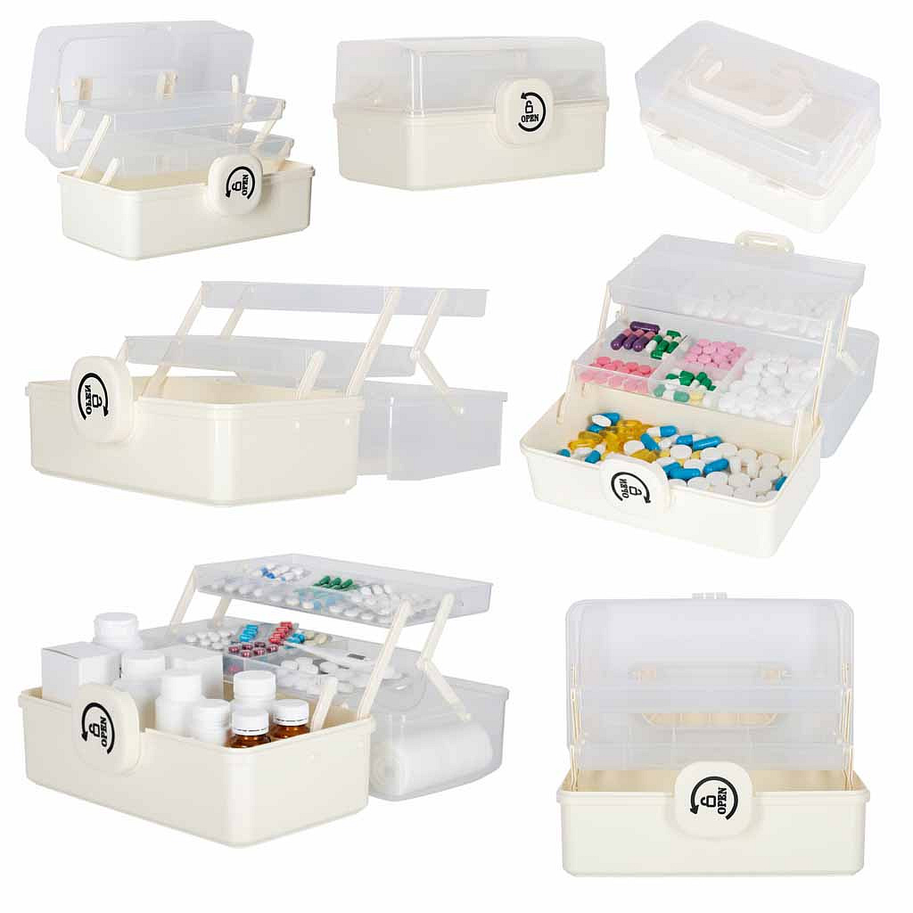 VÍCEÚROVŇOVÝ KONTEJNER NA LÉKY XL - VELKÁ LÉKÁRNIČKA - OTEVÍRÁNÍ KASKÁDOVĚ