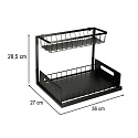 Černý dvouúrovňový organizér pod dřez je ideální volbou pro tebe, pokud ti záleží na udržování pořádku ve své kuchyňské skříňce. Navržen s ohledem na praktičnost a funkčnost, organizér umožňuje maximálně využít dostupný prostor pod dřezem, pomáhá uspořádat nezbytné doplňky a produkty užitečným způsobem.