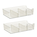 Organizér se skládá ze dvou úrovní, což zajišťuje dodatečný prostor pro ukládání. Každá z polic má přihrádky, což umožňuje uspořádání drobnějších předmětů.