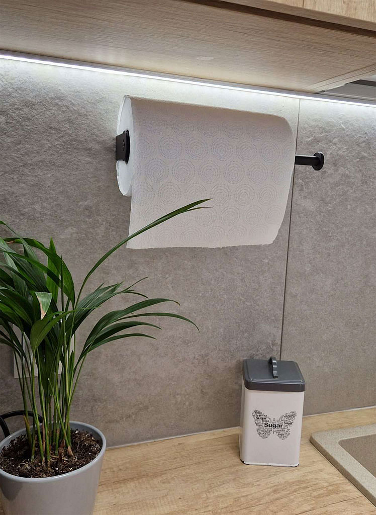 Dzięki praktycznemu uchwytowi nie tylko zyskasz więcej miejsca na blacie kuchennym, ale również będziesz mieć ręcznik zawsze pod ręką i zawsze w tym samym miejscu.