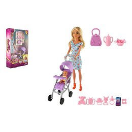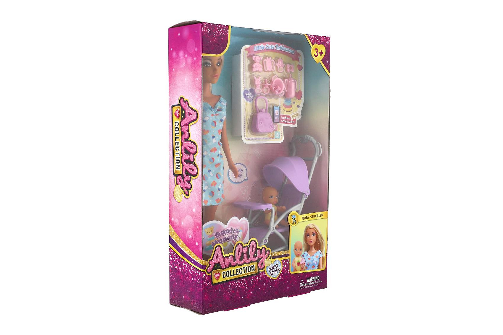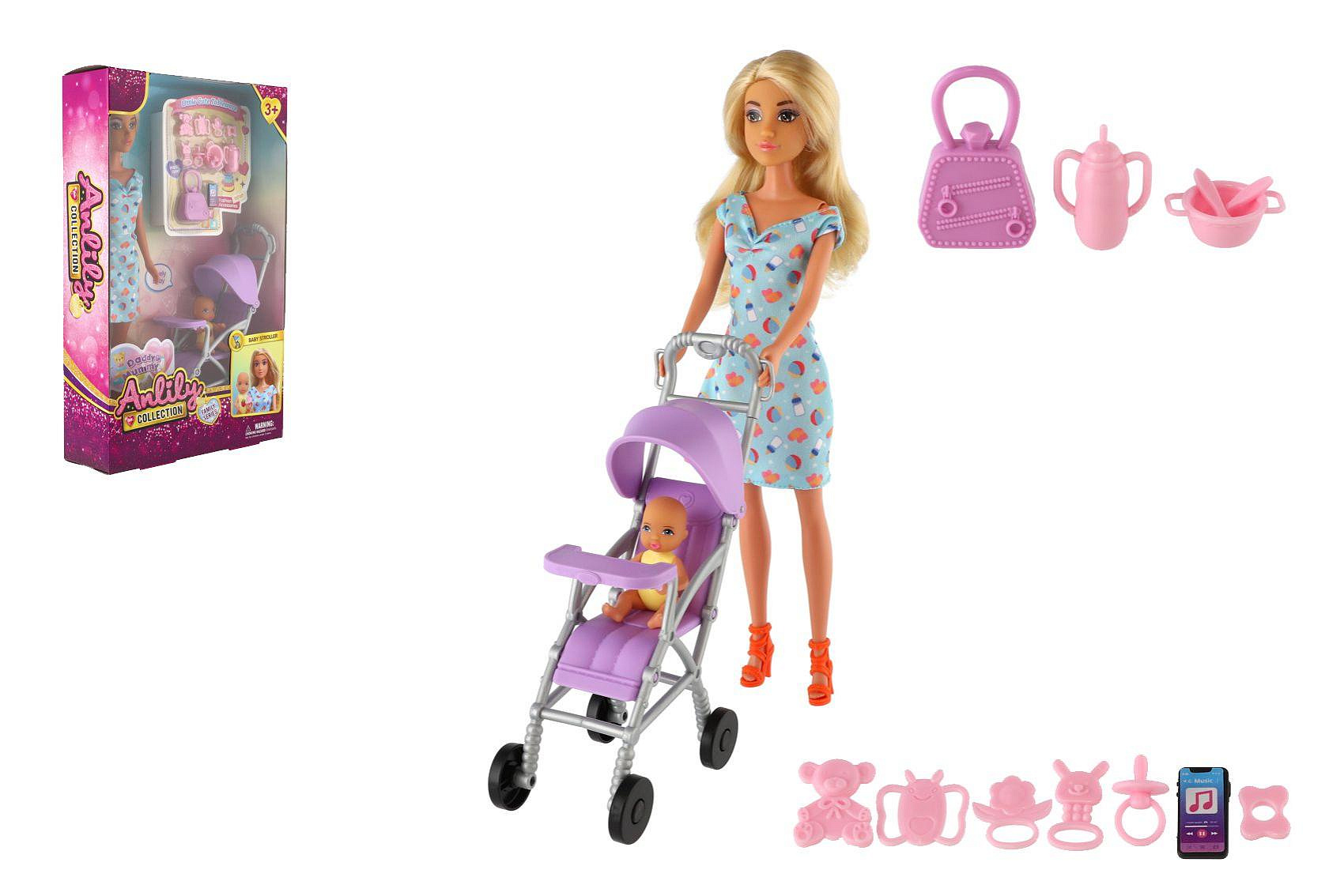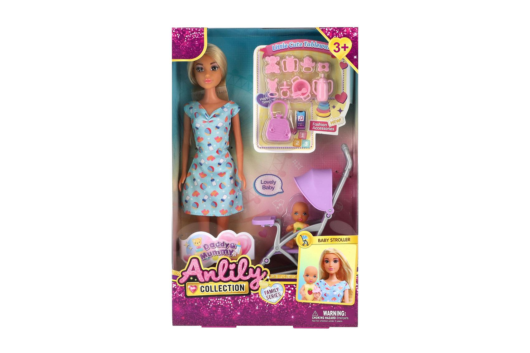 Panenka Anlily 30cm s holčičkou a kočárkem + doplňky plast v krabici 20x32x7cm