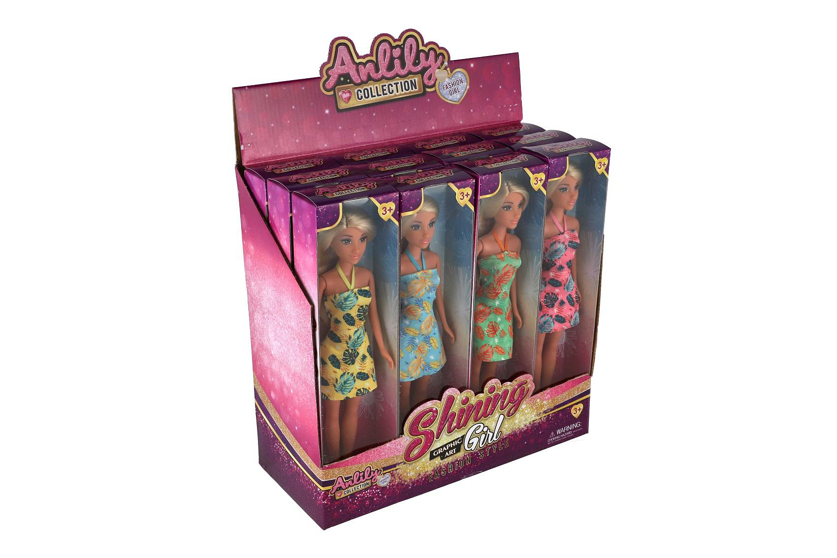 Panenka Anlily v plážových šatech plast 30cm 4 barvy v krabičce 8x32x5cm 12ks v boxu