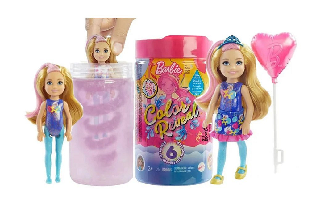 - Magická proměna: Uvnitř tuby je tajemství, a to panenka Chelsea ™ Color Reveal ™ a šest dalších překvapení. Vyjměte všechny předměty a naplňte tubu teplou vodou, poté vložte panenku a zatočte s ní. Voda začne měnit barvu a po vytažení panenky se odhalí její skutečný vzhled!