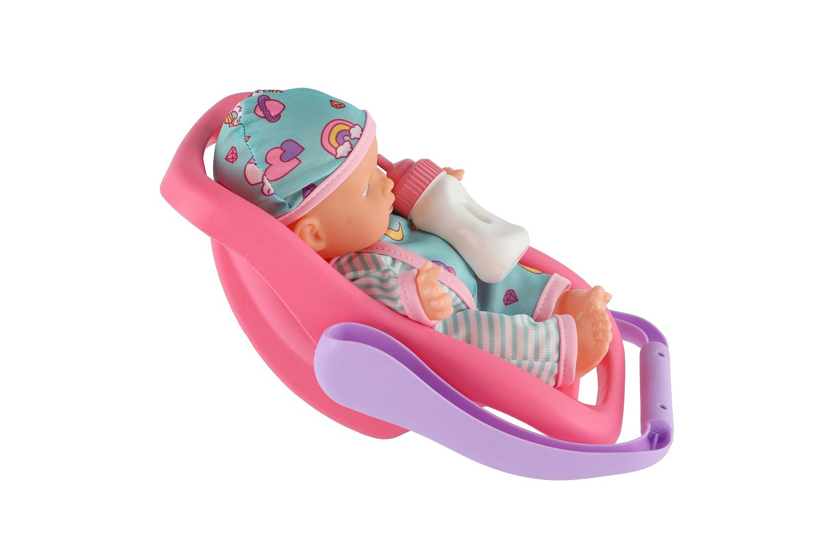 Popis Panenka miminko 20 cm plast v nosítku/autosedačce s lahvičkou v blistru