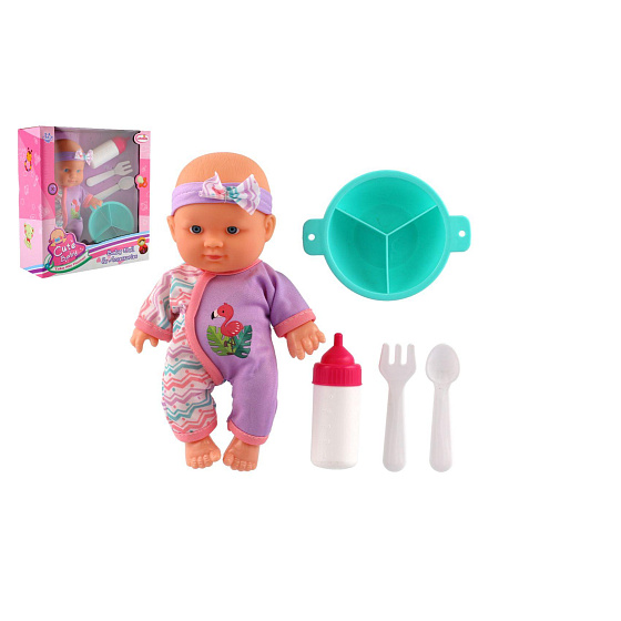 Roztomilá panenka s pevným telíčkem. Toto miminko udělá jistě radost každé holčičce a stane se tak její nepostradatelnou součástí. Součástí balení je jídelní set pro batolata, které určitě každá maminka pro své miminko nutně potřebuje. Velikost panenky: 20 cm Rozměr balení: 23 x 24 x 8 cm. Vhodné pro děti od 3 let.