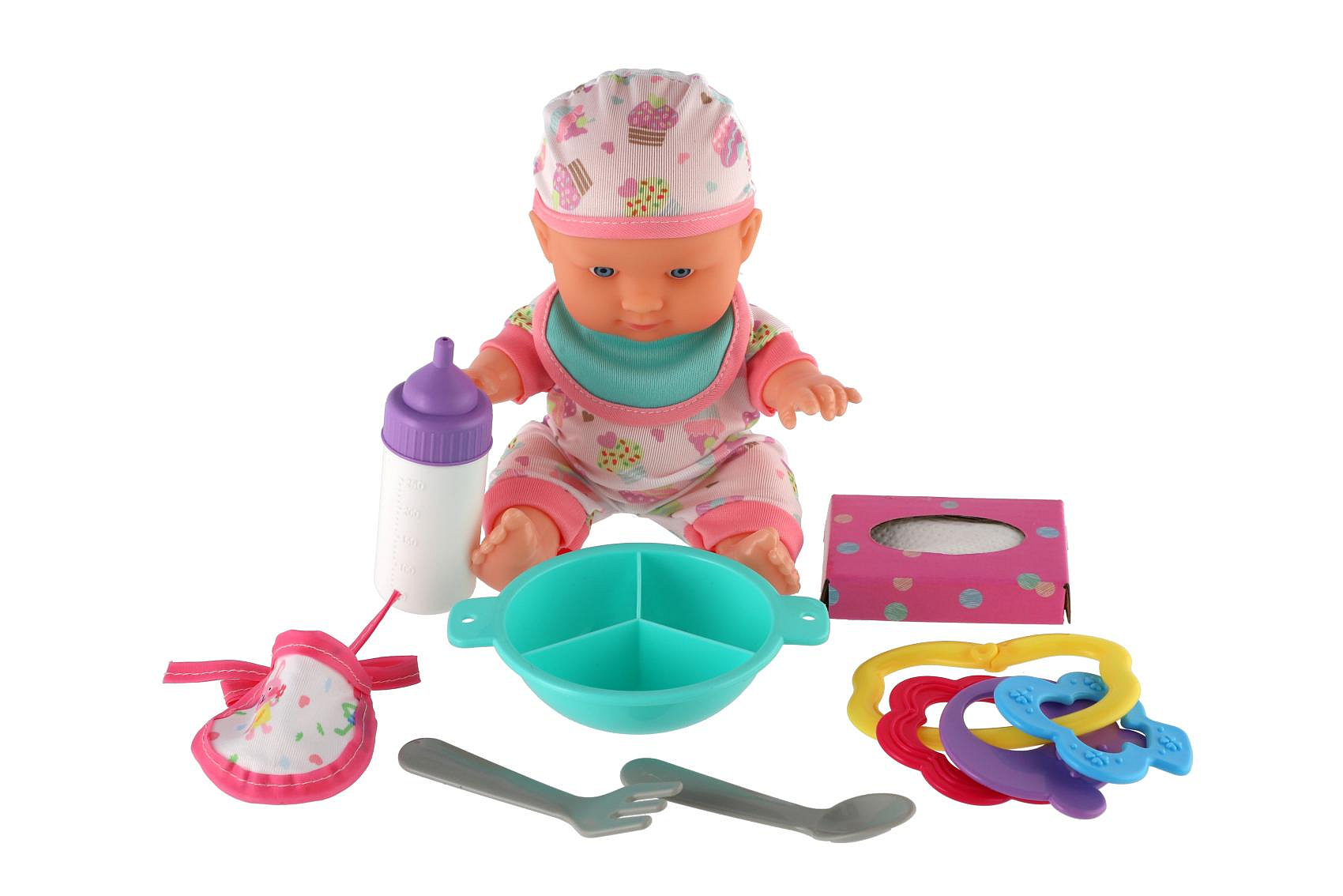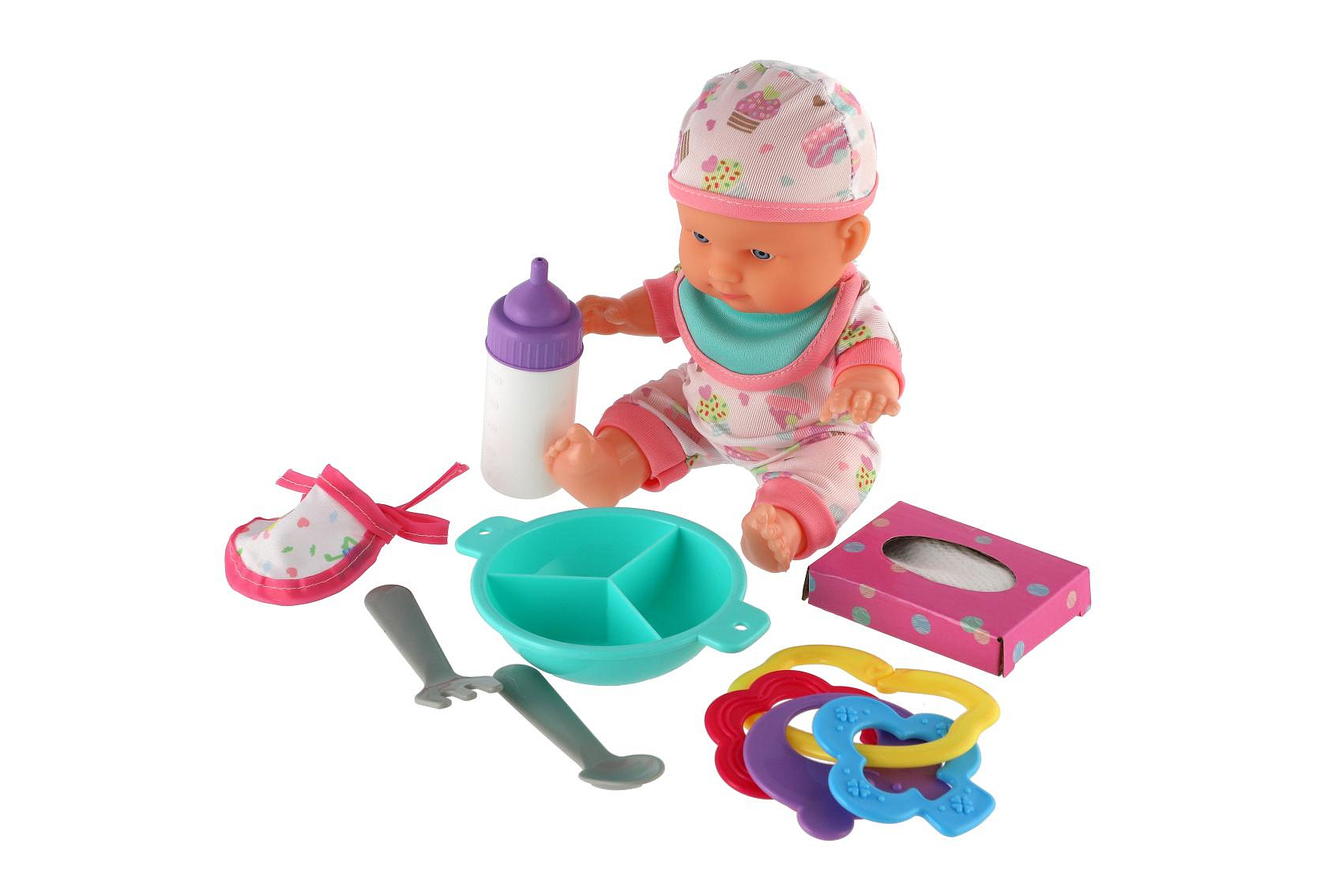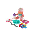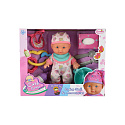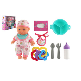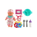 Panenka miminko 22cm pevné tělo plast s doplňky v krabici 30x24x8cm